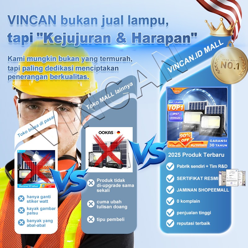 【Garansi 30 Tahun】VINCAN Lampu Taman Lampu Tenaga Surya Beli 1 Gratis 1 Lampu Solar LED 2800W Super Terang Tahan Air IP