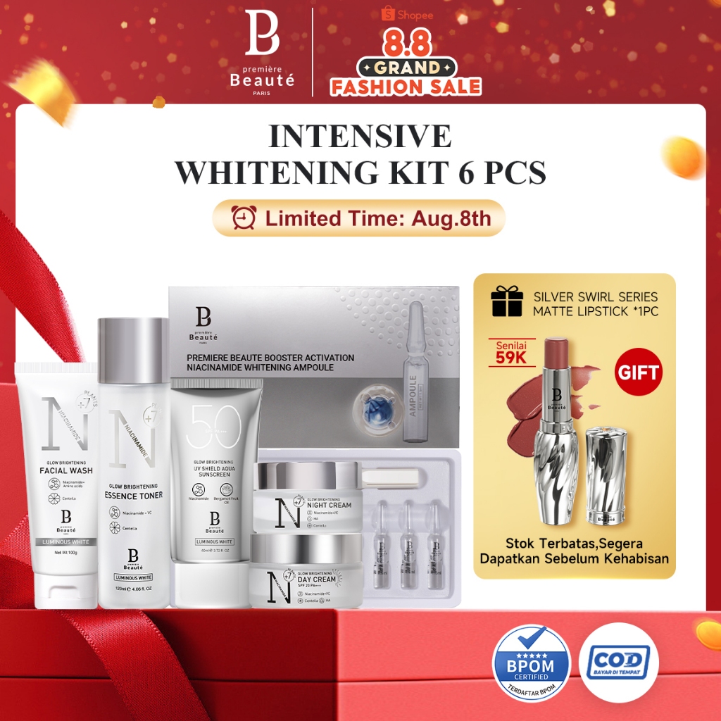 PREMIERE BEAUTE Intensive Whitening Kit 6 Pcs Glow Whitening Paket Series Brghtening Packet wajah Skincare BPOM
