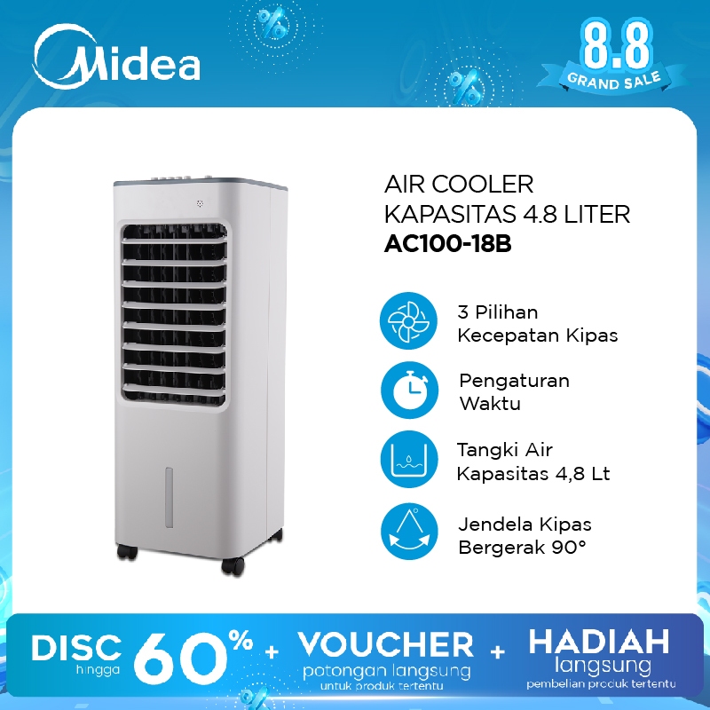 Midea Air Cooler Pendingin Ruangan Low watt 4.8 Liter AC100-18B/ Air Cooler 6.0 Liter AC100-A