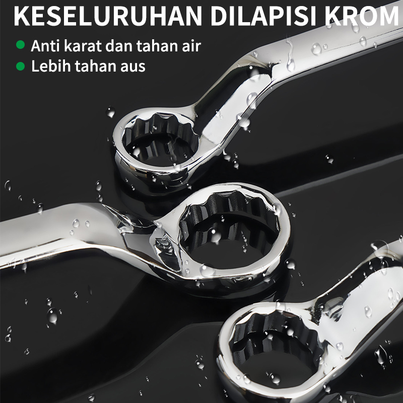 ISKU Kunci Ring Pas Set 11 pcs 8-27mm Alat Perkakas Tools Kunci Ring Pas 1 Lengkap
