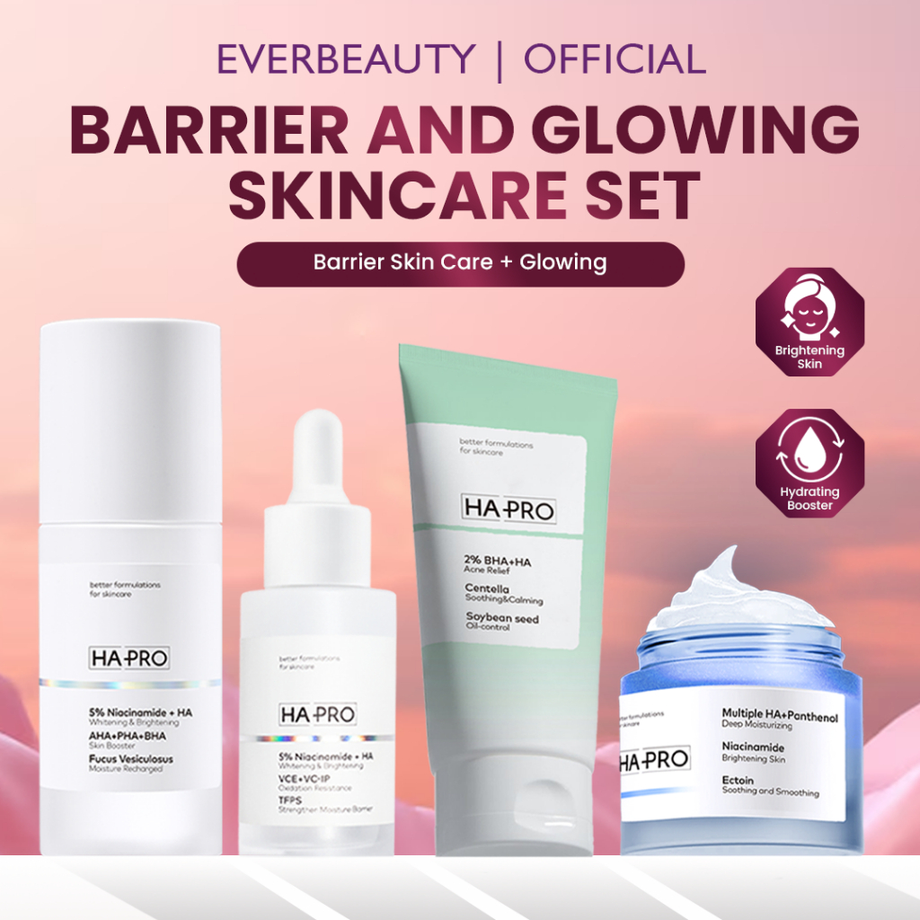 [EVERBEAUTY] HA PRO NEW Bundling 4pcs | Skin Barrier Moisturizer30g + Glowing Serum 30ml + Glowing Toner 80ml + Acne Face Wash 100g | Glowing Set | Bundling Skincare | Paket Skincare Pembersih Wajah