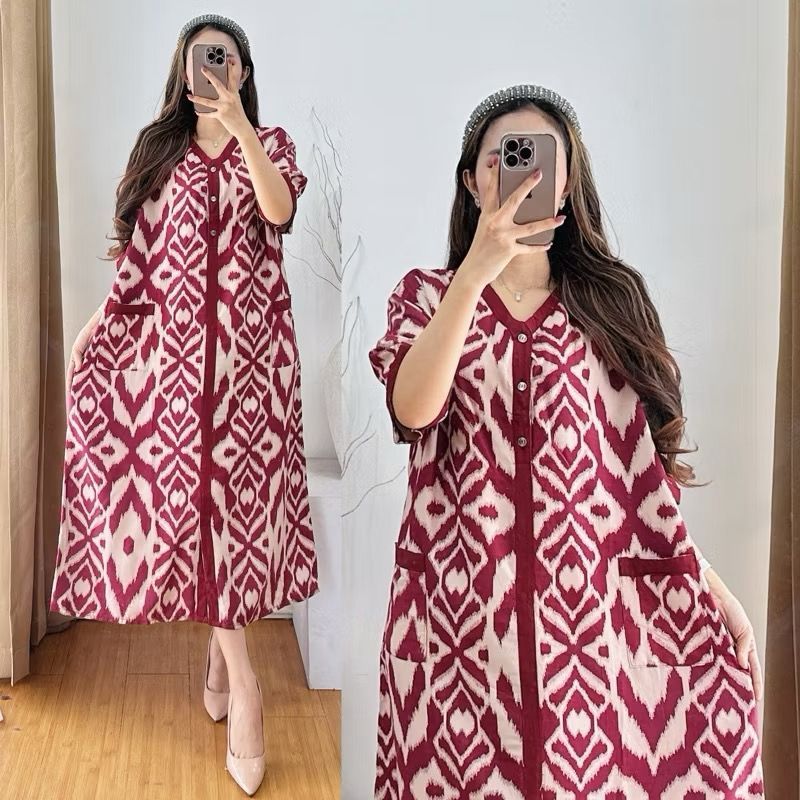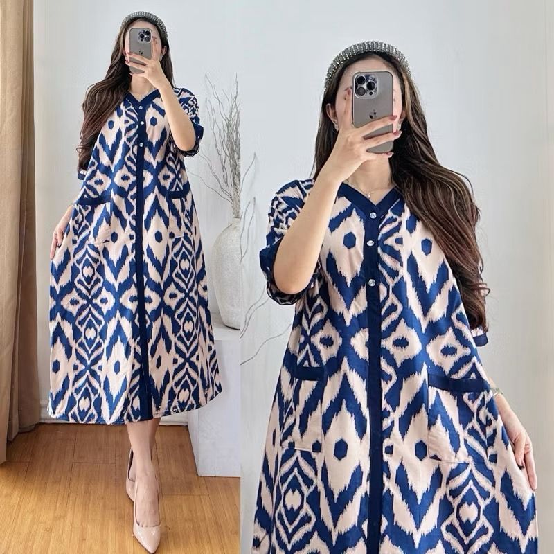 Nona Dress Daster Busui Buil Cantik Murah Premium Pakaian Wanita Bunga Rayon Ada Saku Katun Rayon Nyaman Kancing Aktif