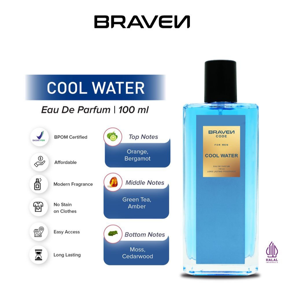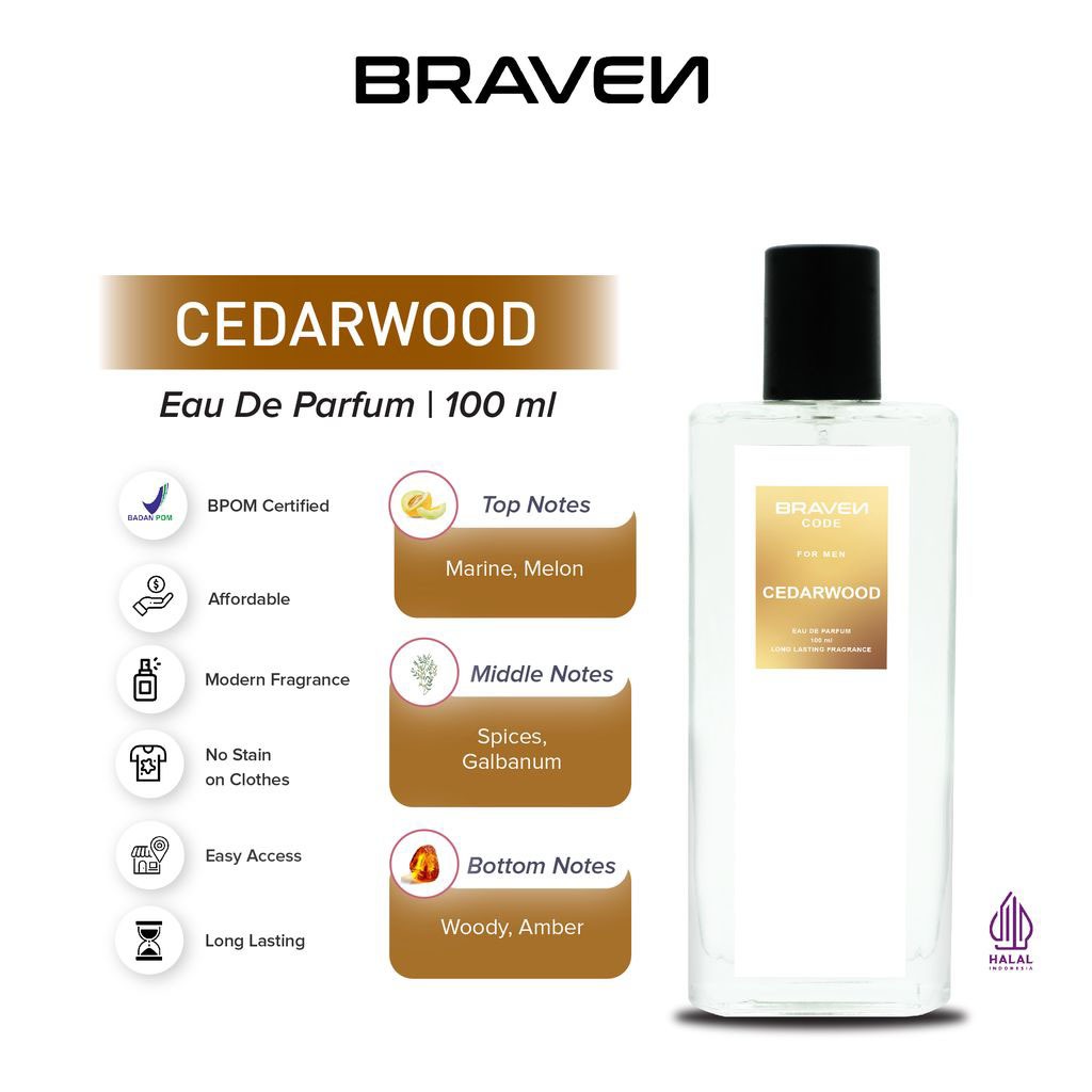 BRAVEN - E EAU DE PARFUM ( 100 ml ) - Perfume Wangi Tahan Lama Untuk Pria Cedar Wood | Cool Water | Oud Wood | Urban Long-Lasting Parfume EDP Modern Fragrance Pria - Evangeline