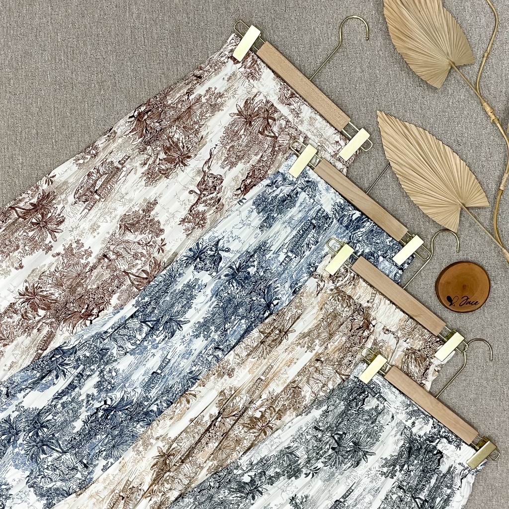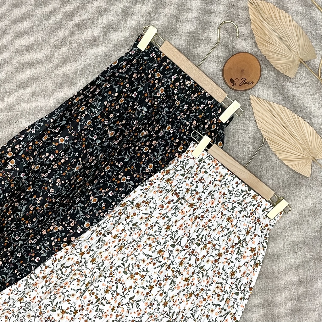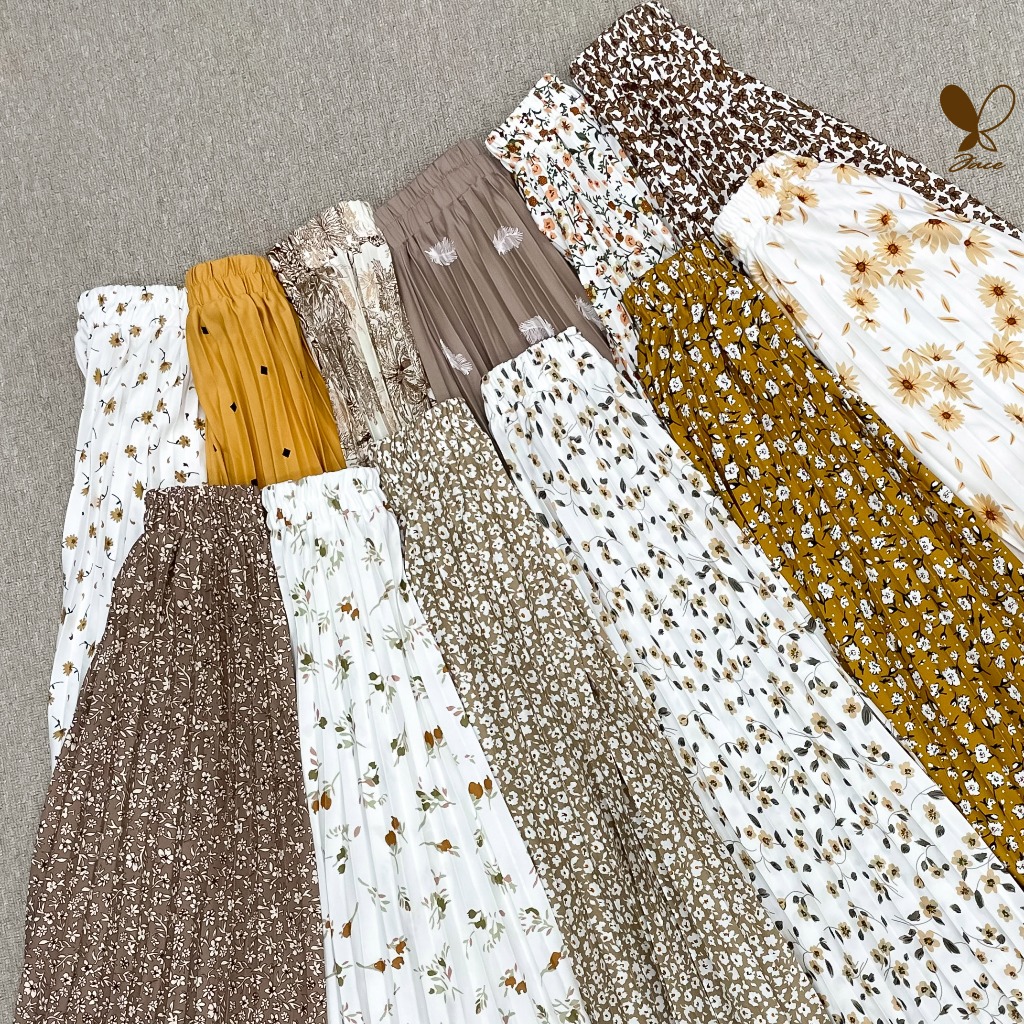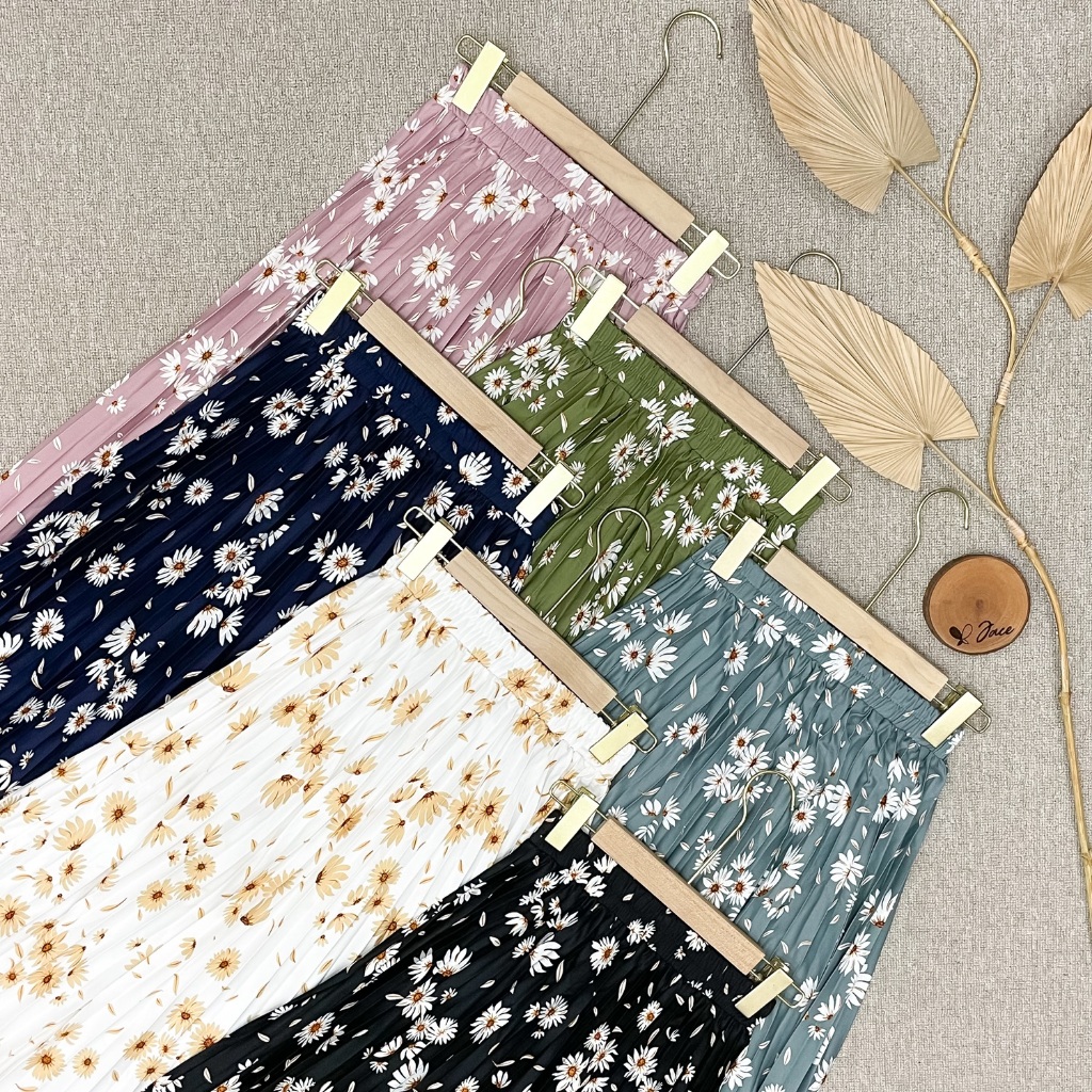 𝐉𝐀𝐂𝐄-ROK PLISKET MOTIF Pleated Skirt Bunga Wanita Korean Style Panjang Mekar Mayung