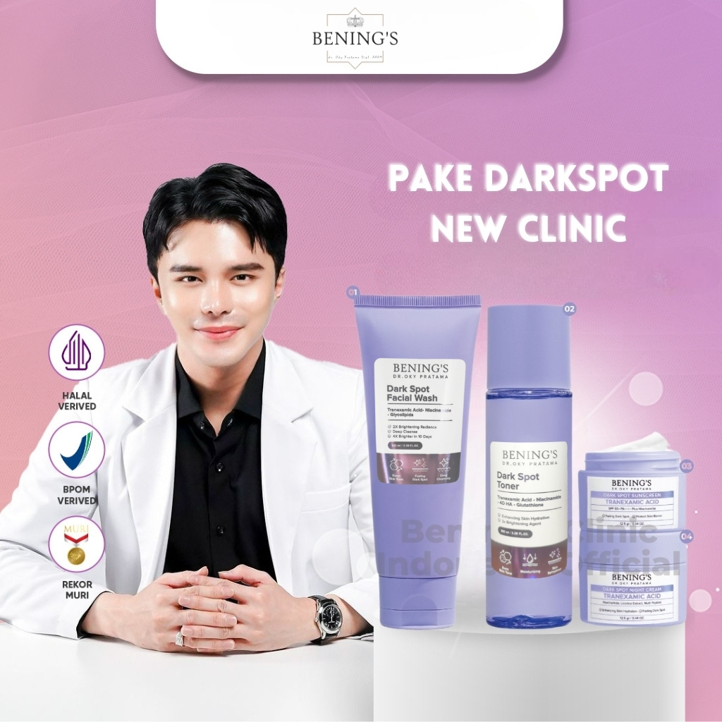 BENING'S SKINCARE PAKET BRIGHTENING ACNE DRAKSPOT - Skincare Perawatan Wajah Glowing Benings Dr Oky