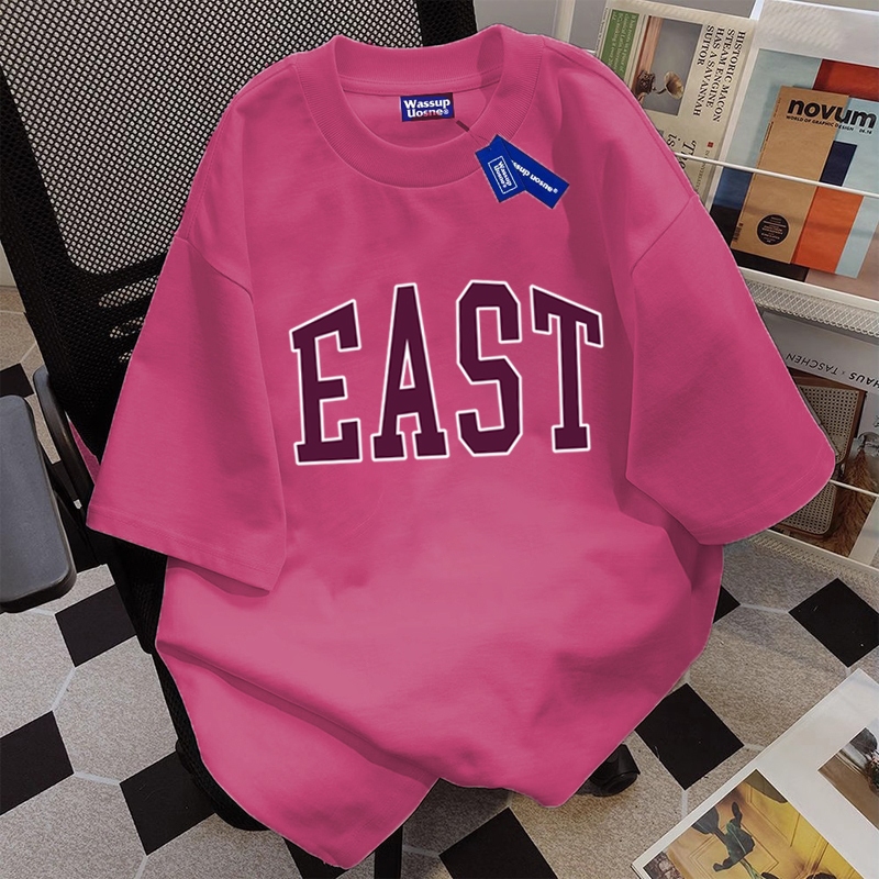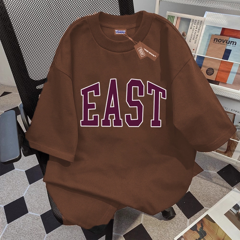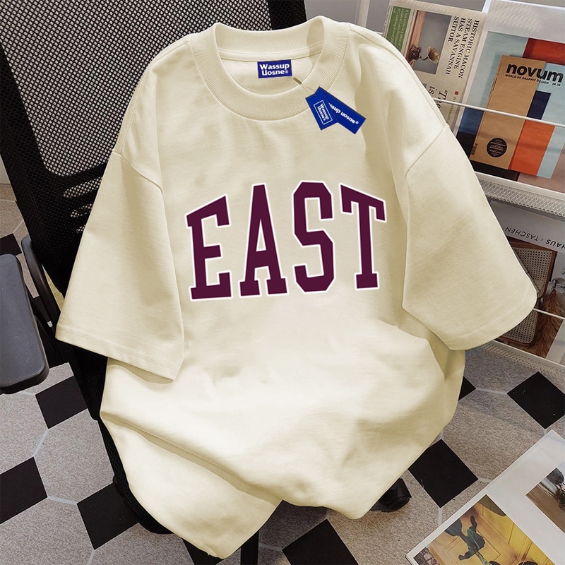 BOOMBAP American retro Style T-shirt Oversize Korean fashion simple letter EAST print top| Kaos Wanita Putih | Kaos pria dan wanita | Street Style 100 PERSENCotton top 6.10
