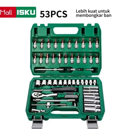 ISKU Kunci Sok Set 53pcs Kunci Shock Set Lengkap Kunci Mata Sok 53 PCS Set Socket (1/4 ") Full TOOL KIT 20PCS Kunci Mata