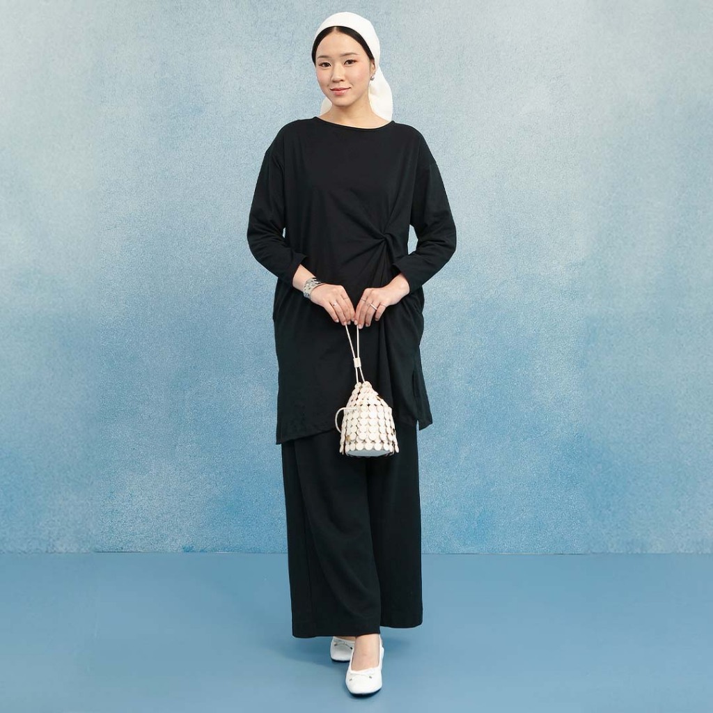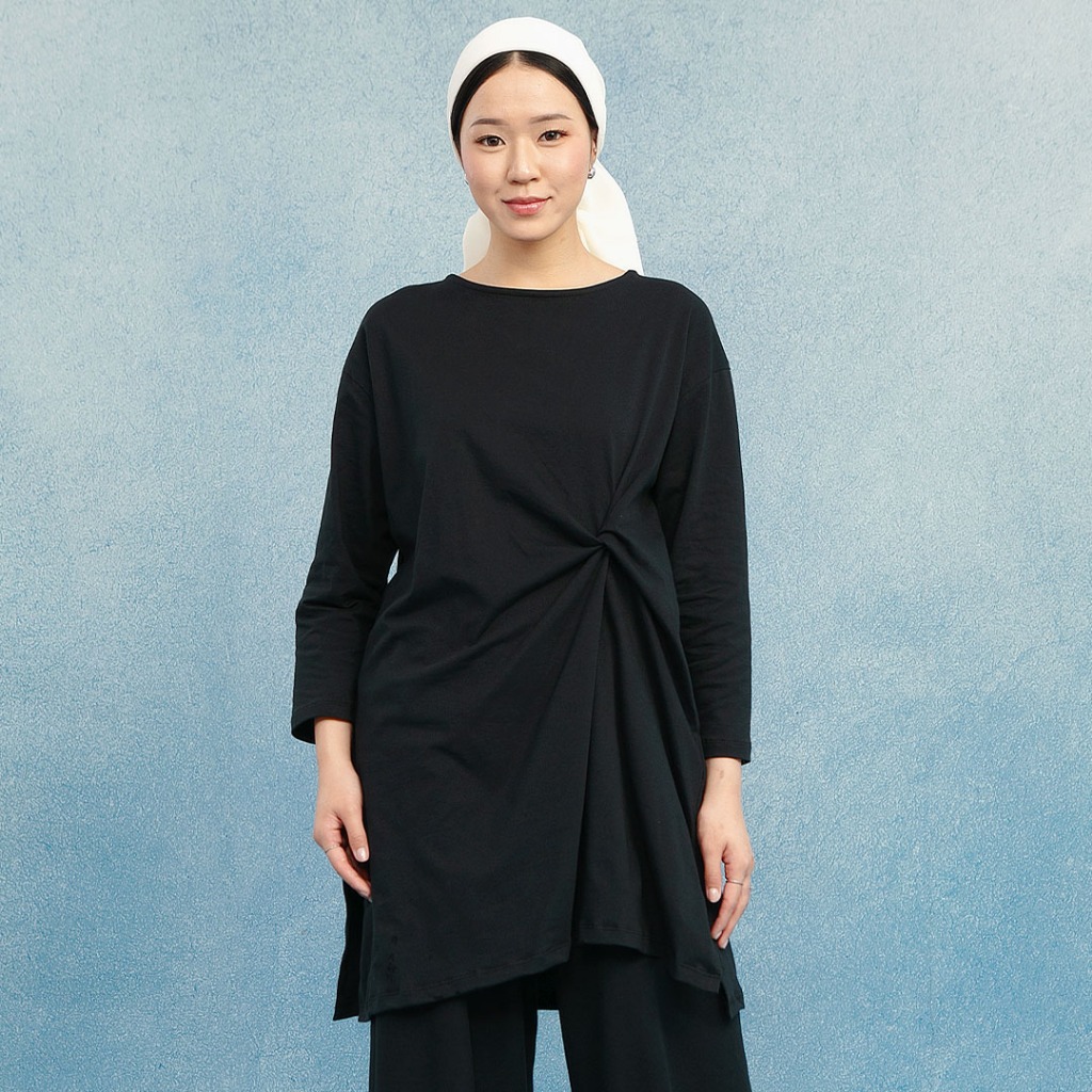HijabChic Wily Black Tunic - Tunik Polos Basic Cotton Combed Kerah Crewneck