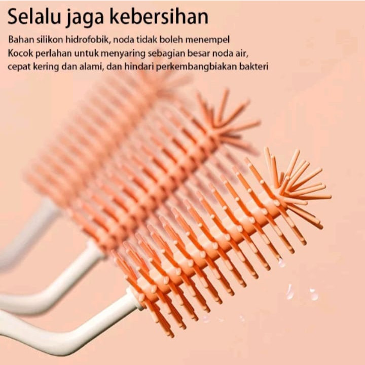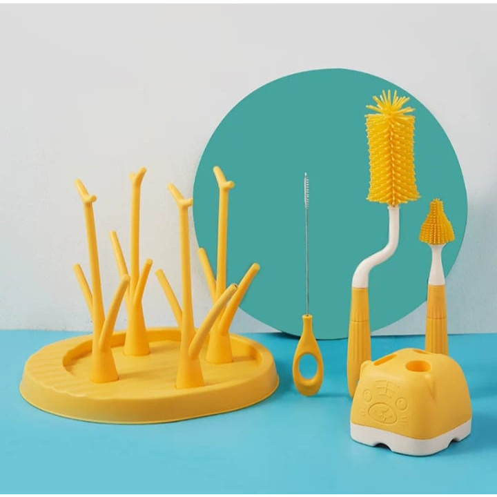 Sikat Silicon Botol Minum Bayi Anak Balita Sikat Botol + Tutup + Sedotan+Rak Pengering Lengkap Portable (4 Pcs In 1 Set)