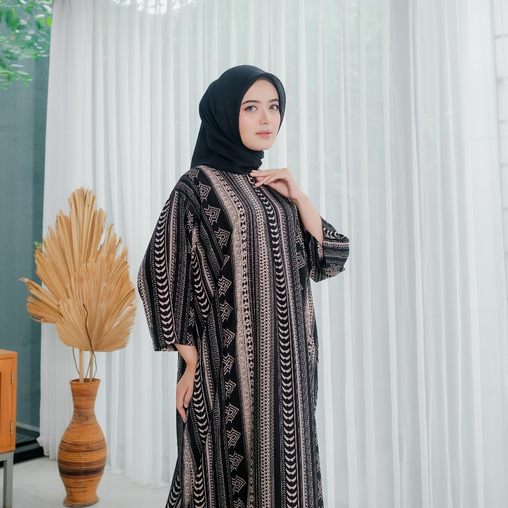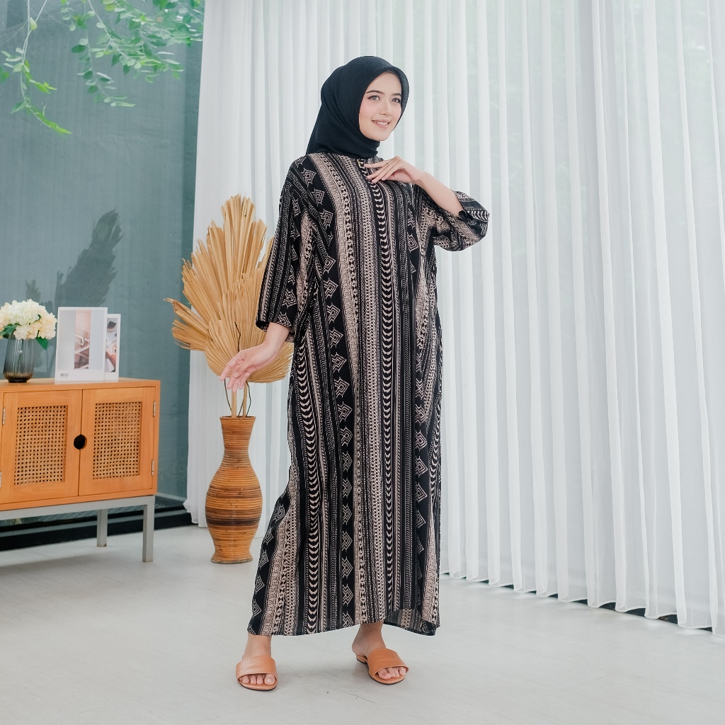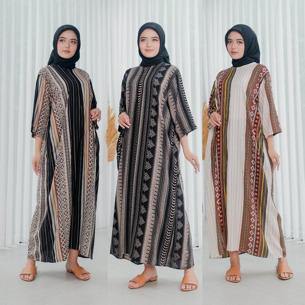 Shebia - Daster Motif Salur Kekinian Lengan 3/4 Bahan Rayon Bumil Busui Friendly