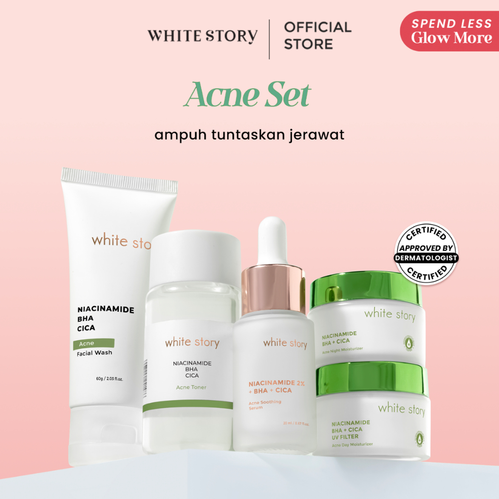 5in1 White Story Best-Selling Package - Paket Wajah Brightening, Acne, Dark Spot, Vitamin C