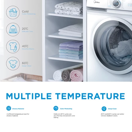 MESIN CUCI MIDEA FRONT LOADING KAPASITAS 7,5 8 KG MODEL MF100W75 MF100W85BN BUKAAN DEPAN JUMBO TERBARU MURAH