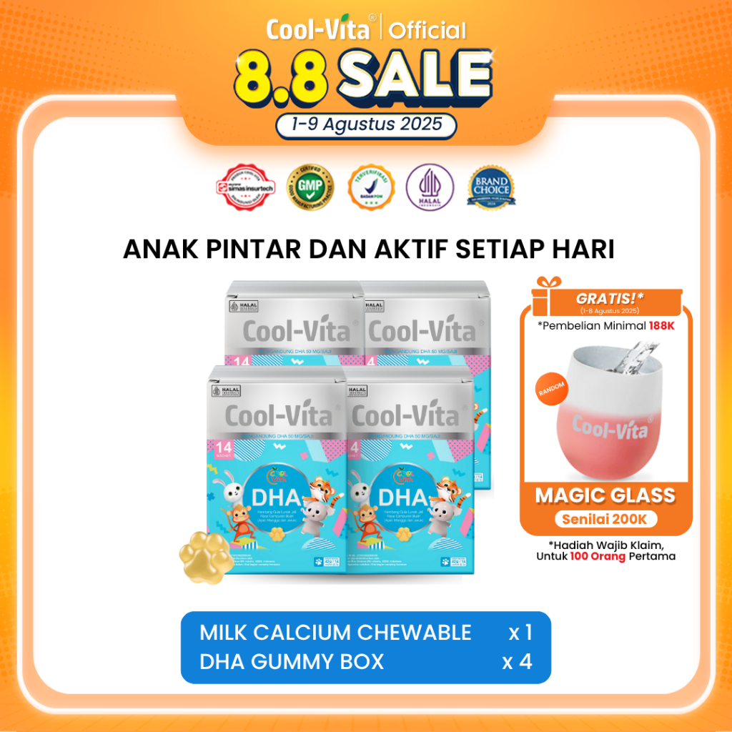 Coolvita 4 Box Dha Gummy Rasa Apel, Mangga, Dan Jeruk Untuk Si Kecil Yang Aktif | Suplemen Kesehatan Otak Dan Imun [Live