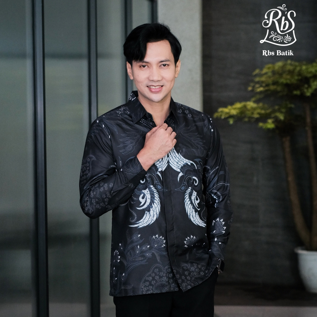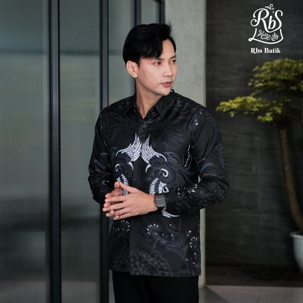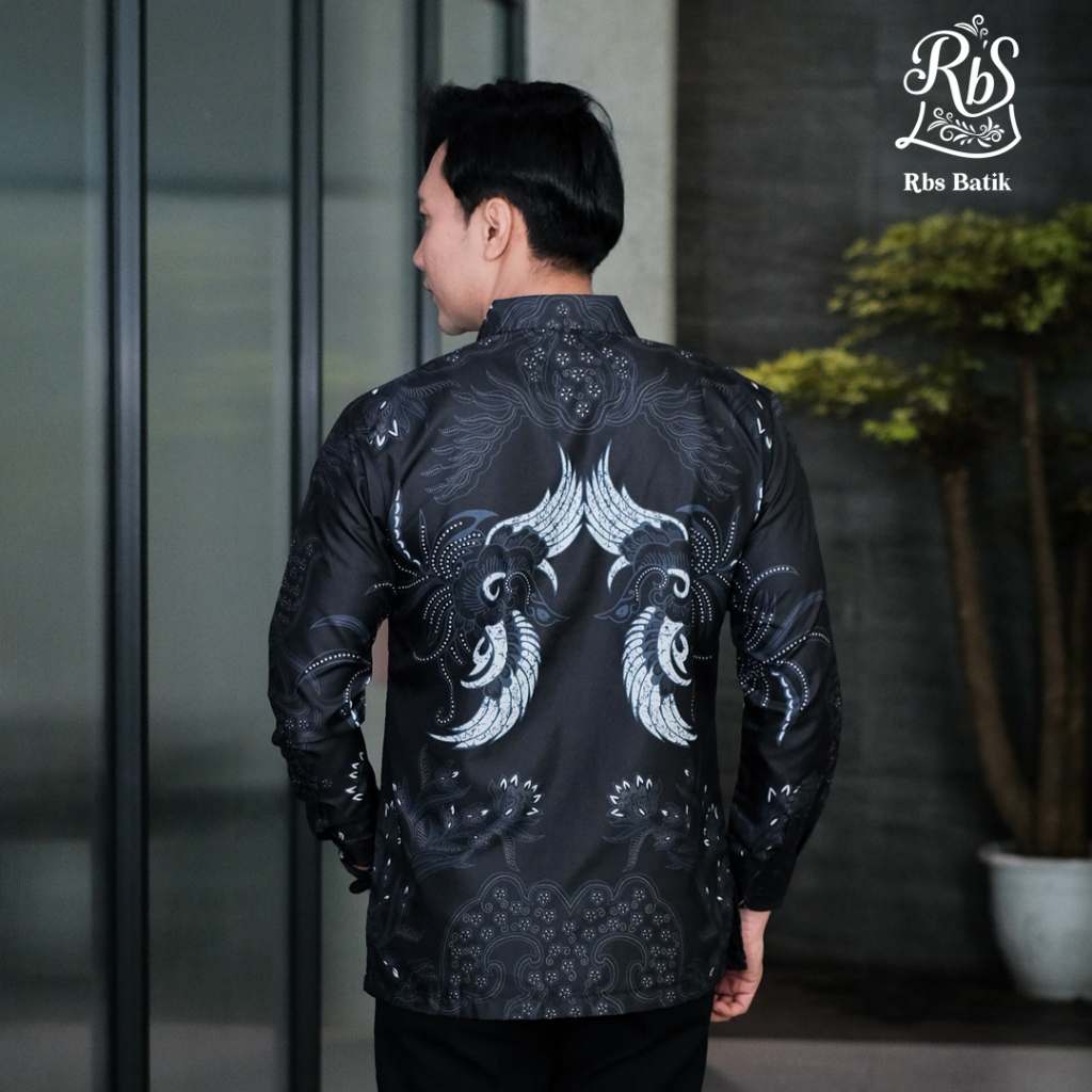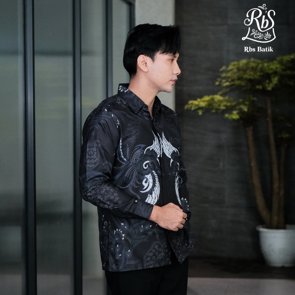 RBS Batik - Kemeja Batik Pria Aqiel Slimfit Lapis Furing Warna Hitam Putih Motif Sayap Cendrawasih
