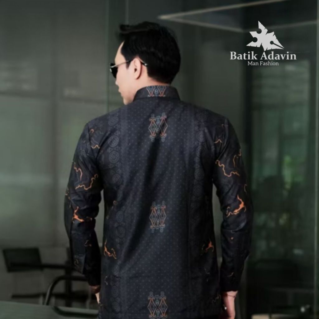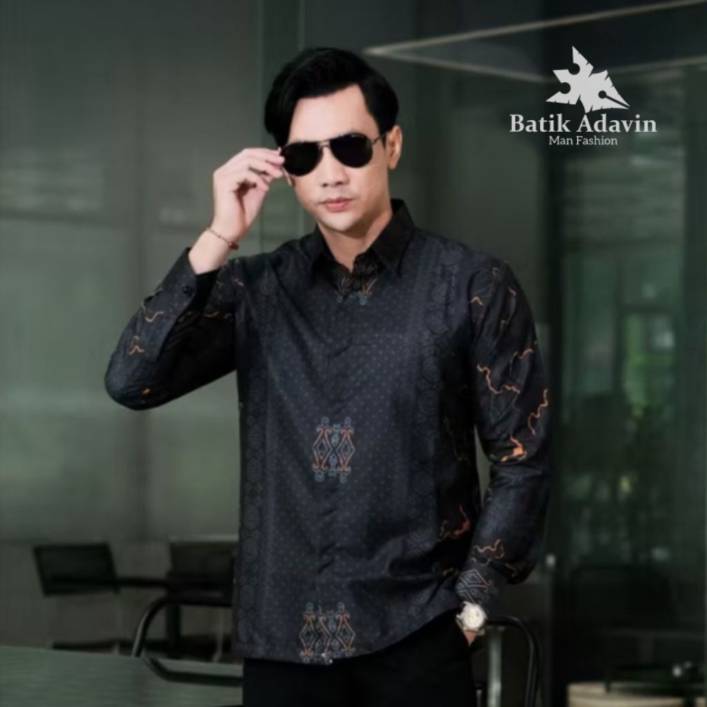 Batik Adavin Batik Pria Lengan Panjang Motif Argopuro Songket Hitam M L XL XXL Katun Poli Premium Reguler