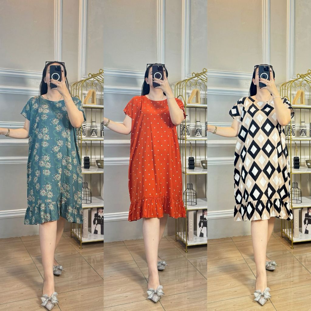 Daster Viral Ruffle Rayon Motif Kekinian Adem Non Busui