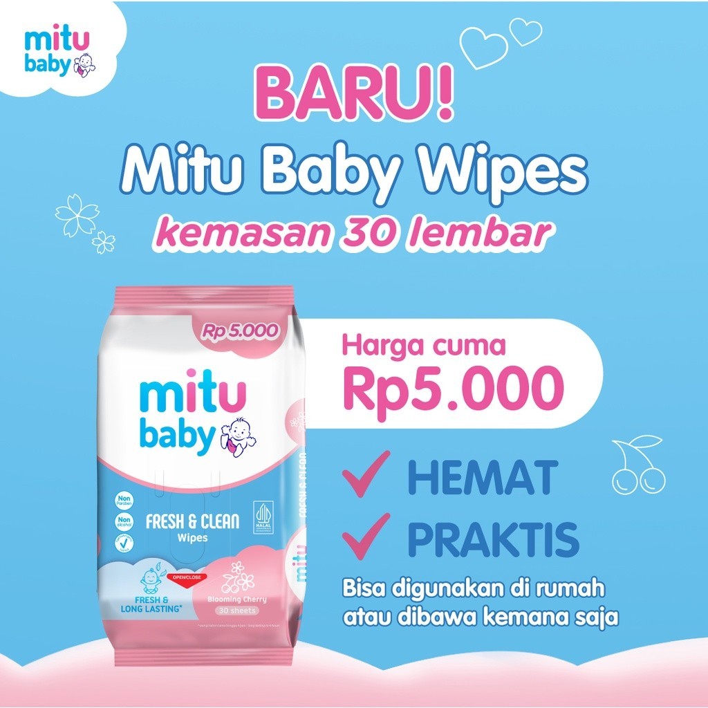 Mitu Baby Tisu Basah Fresh & Clean Wipes Blooming Cherry 25S X10 - Tissue Basah Bayi