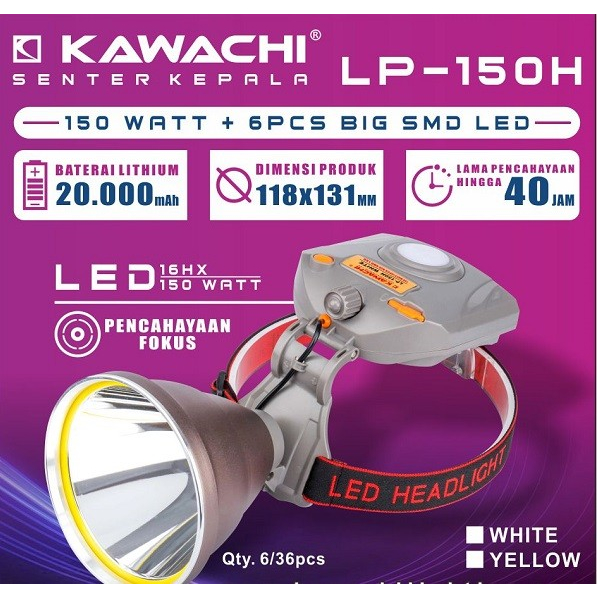 SENTER KEPALA SUPER JUMBO 150watt Plus 6PCS BIG SMD LED LP-150H Super Terang KAWACHI NEW