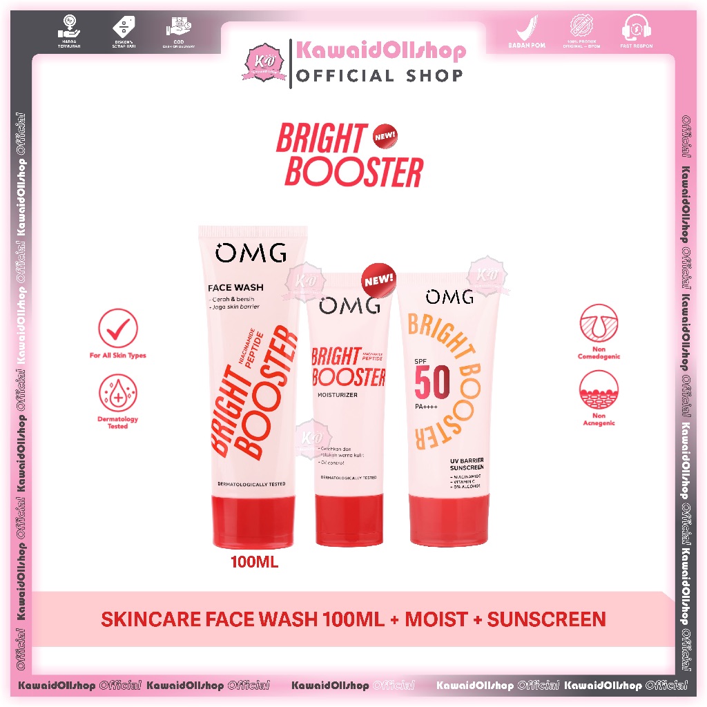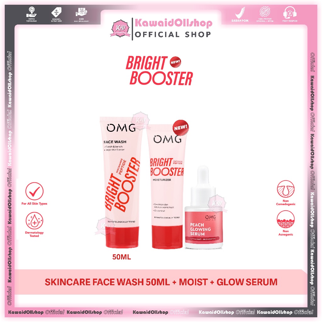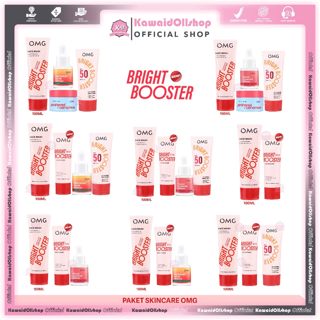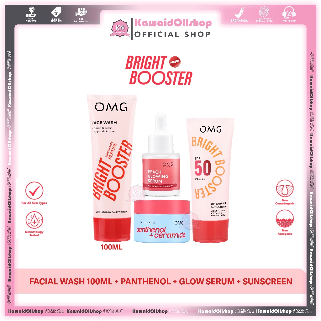 OMG Oh My Glow Paketan Lengkap Skincare Peach Glowing | New Bright Booster | Face care Mencerahkan