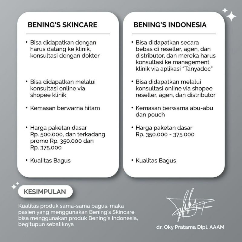 PAKET EXCLUSIVE BENINGS SKINCARE DR. OKY PRATAMA | MENGATASI FLEK DAN NODA