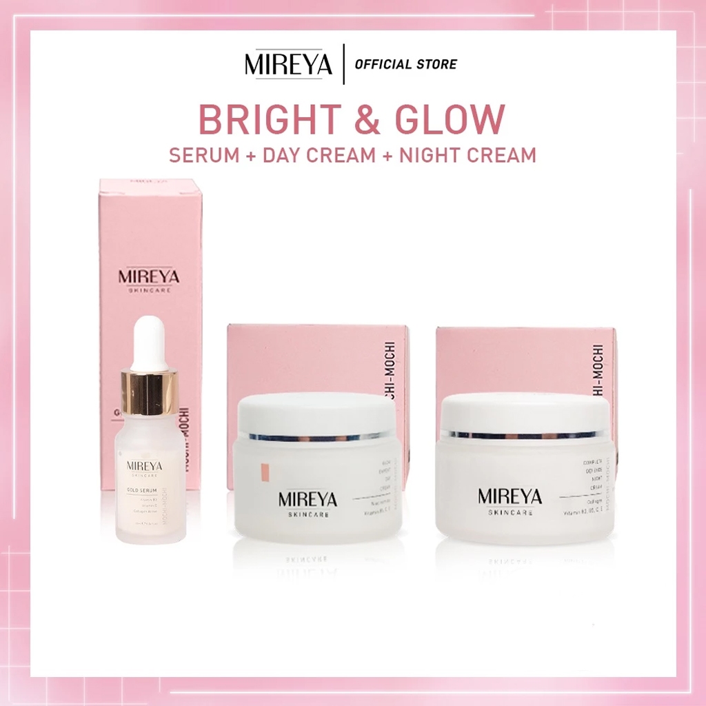 Mireya Mochi Bright & Glow 2 - SERUM + DAY CREAM + NIGHT CREAM - Paket Skincare Serum Cream Siang & Cream Malam untuk Merawat & Mencerahkan Wajah secara Maximal