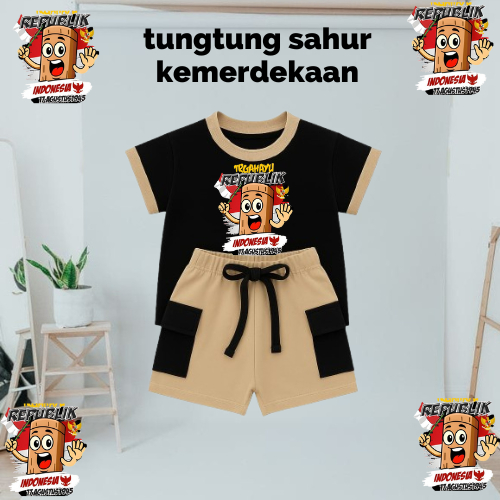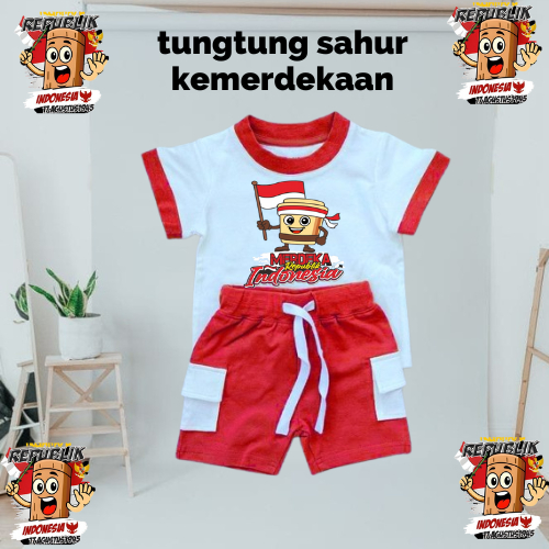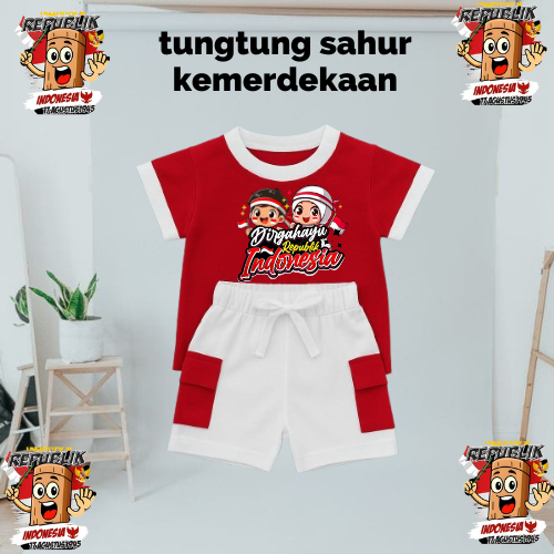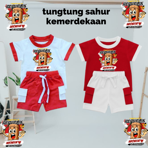 Anomali Kemerdekaan Setelan Anak Laki Laki Perempuan Tung Tung Sahur Merah Putih Usia 1- 6 Tahun