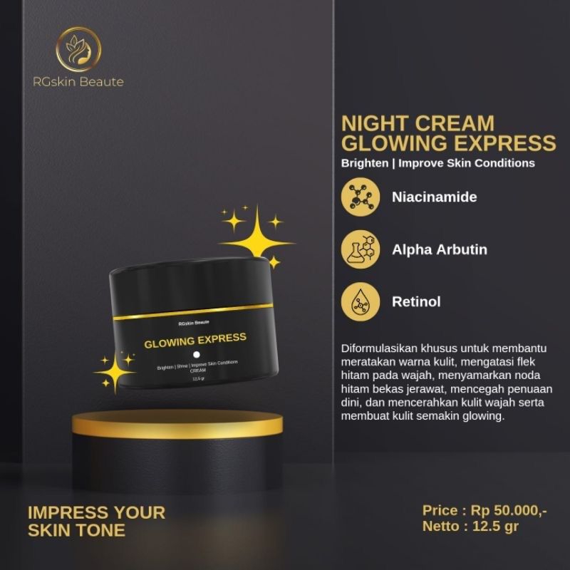 Rgskin Beaute skincare cream malam dan cream siang paket combo night cream day cream