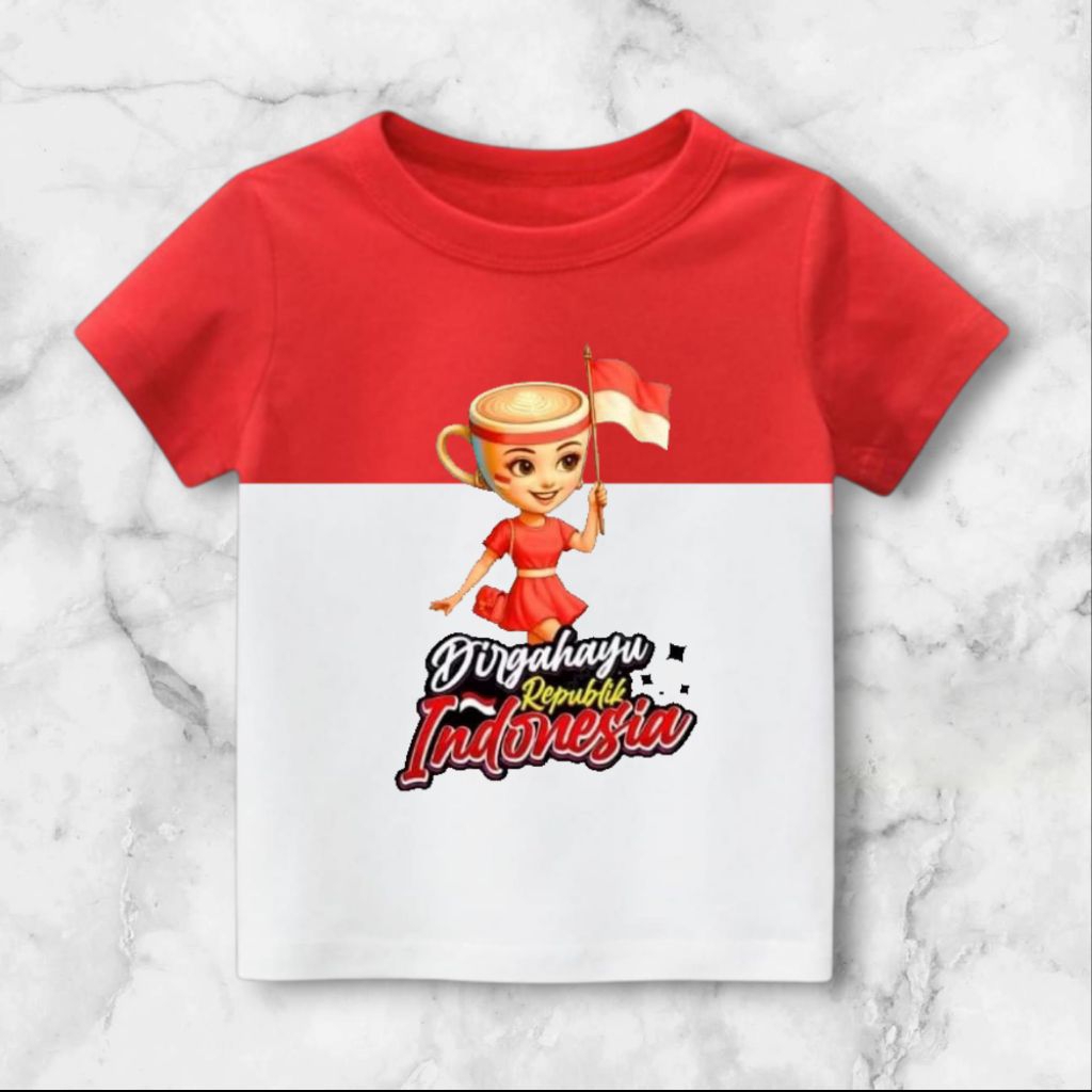 Kaos 17 Agustus Anak-Anak Unisex Umur 1-9 Tahun/Koas Kombinasi Merah Putih