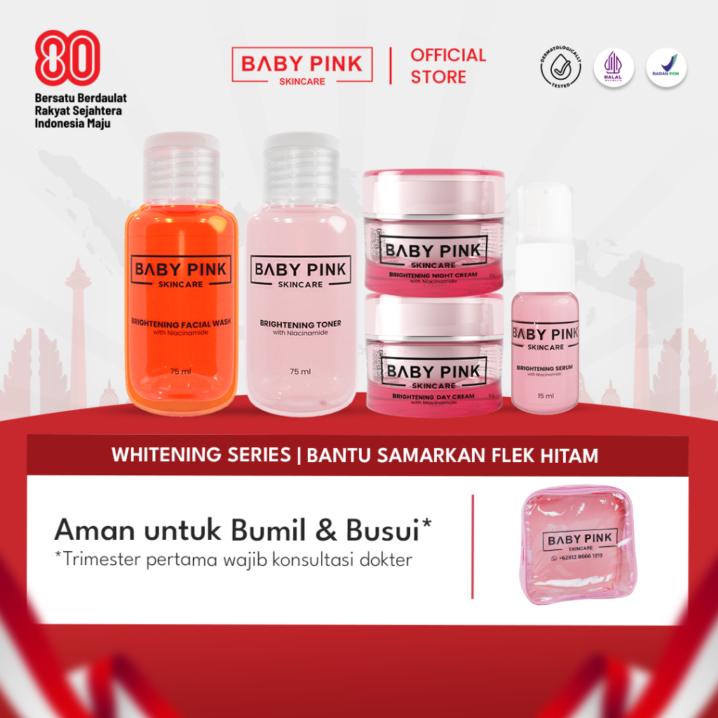 Baby Pink Skincare Paket Whitening Isi 5 Gratis Pouch Membantu Mengurangi Kulit Kusam dan Flek Hitam