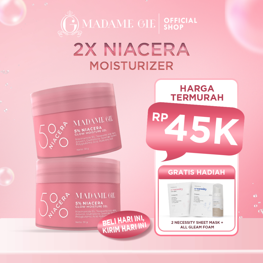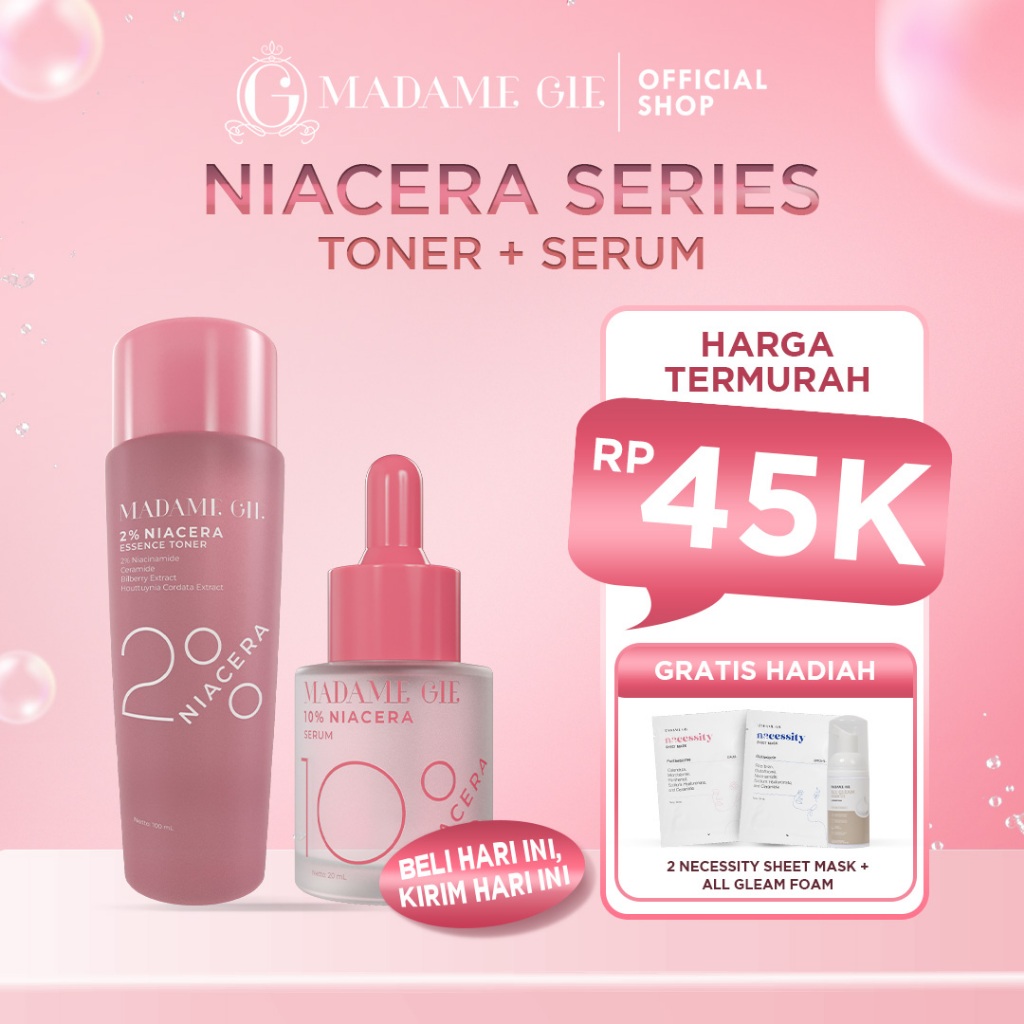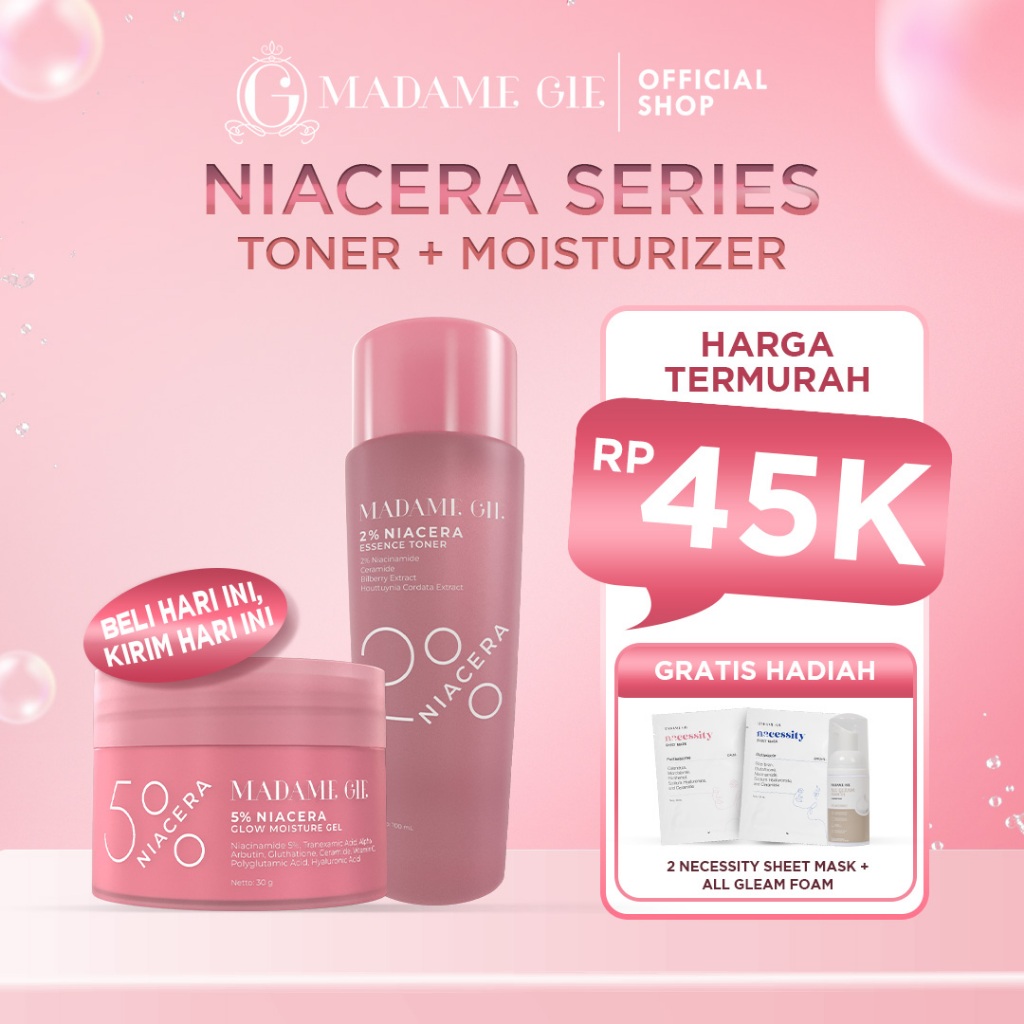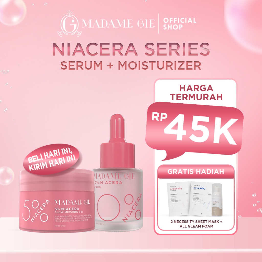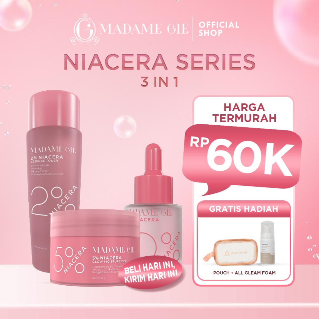 [GRATIS 2 HADIAH] Madame Gie Niacera Bundle All in 1 Skincare Complete Mencerahkan Wajah - Niacera Moisturizer + 10 PERSENNiacera Serum + 2 PERSENNiacera Essence Serum