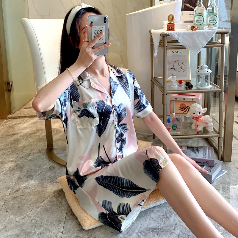 [ RedPink ] Daster Homewear Modern Kekinian Look Style Fit Women Dewasa Deep Shirt Collar With Saku Lengan Pendek All Motif Corak Printing Top Seller Terlaris Satin Import Spandeks Halus Lembut DKS
