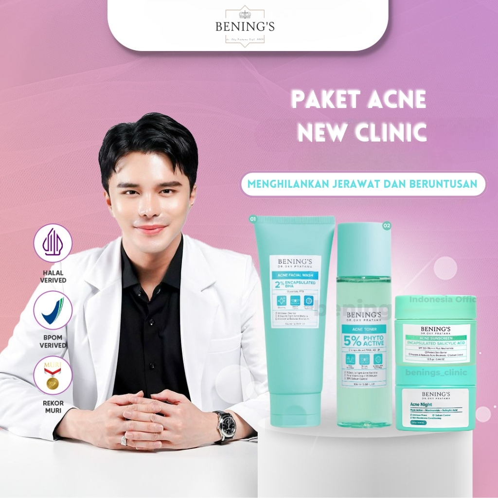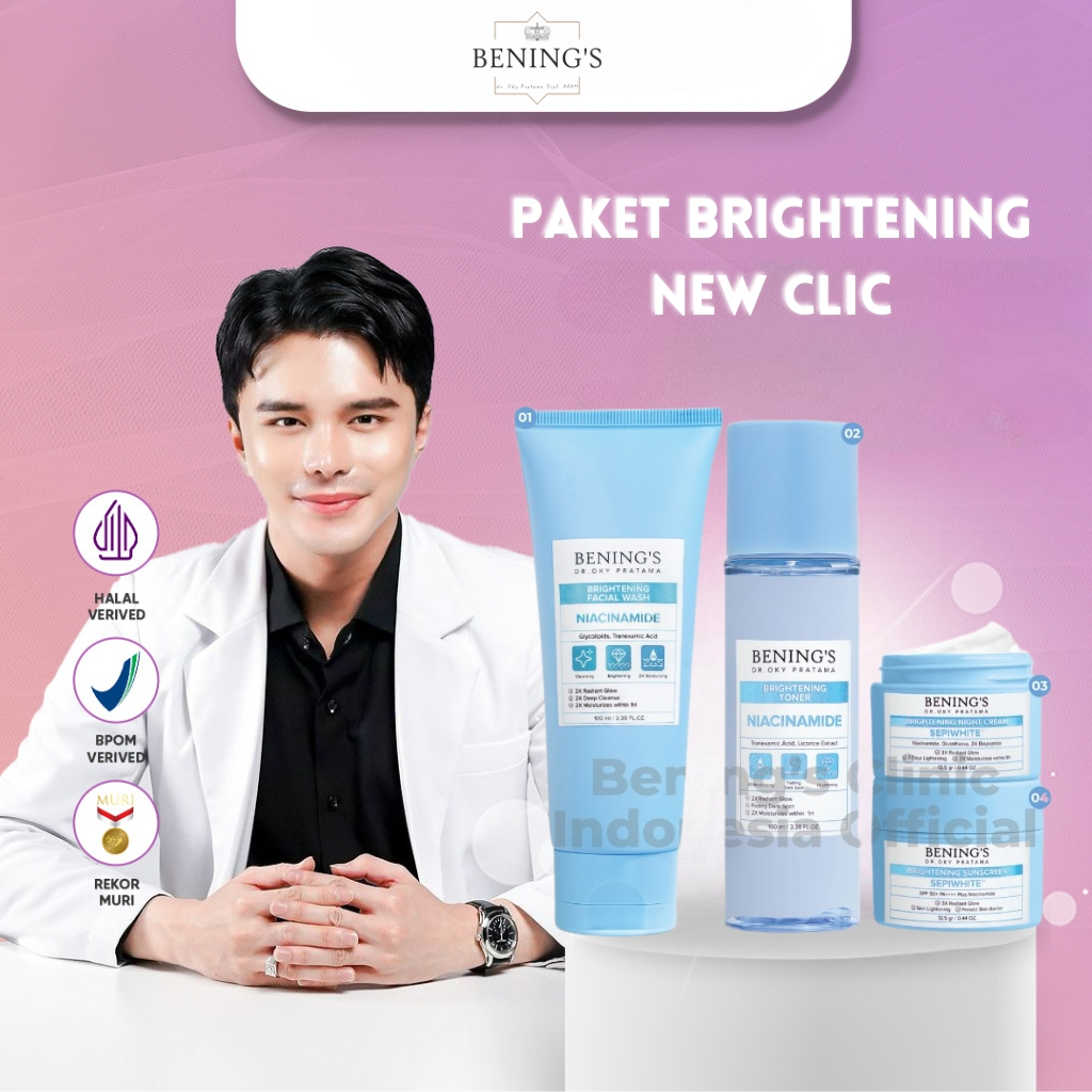 BENING'S SKINCARE PAKET BRIGHTENING ACNE DRAKSPOT - Skincare Perawatan Wajah Glowing Benings Dr Oky