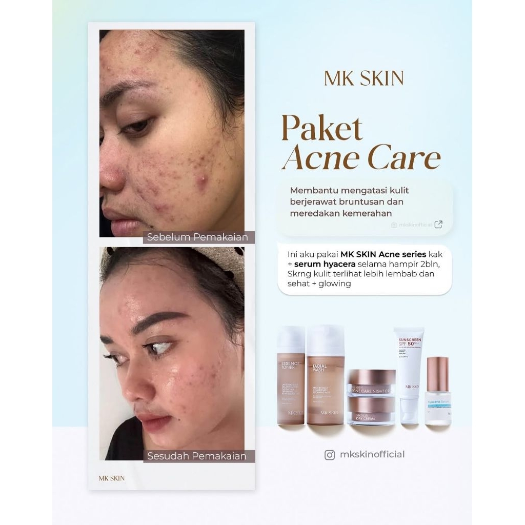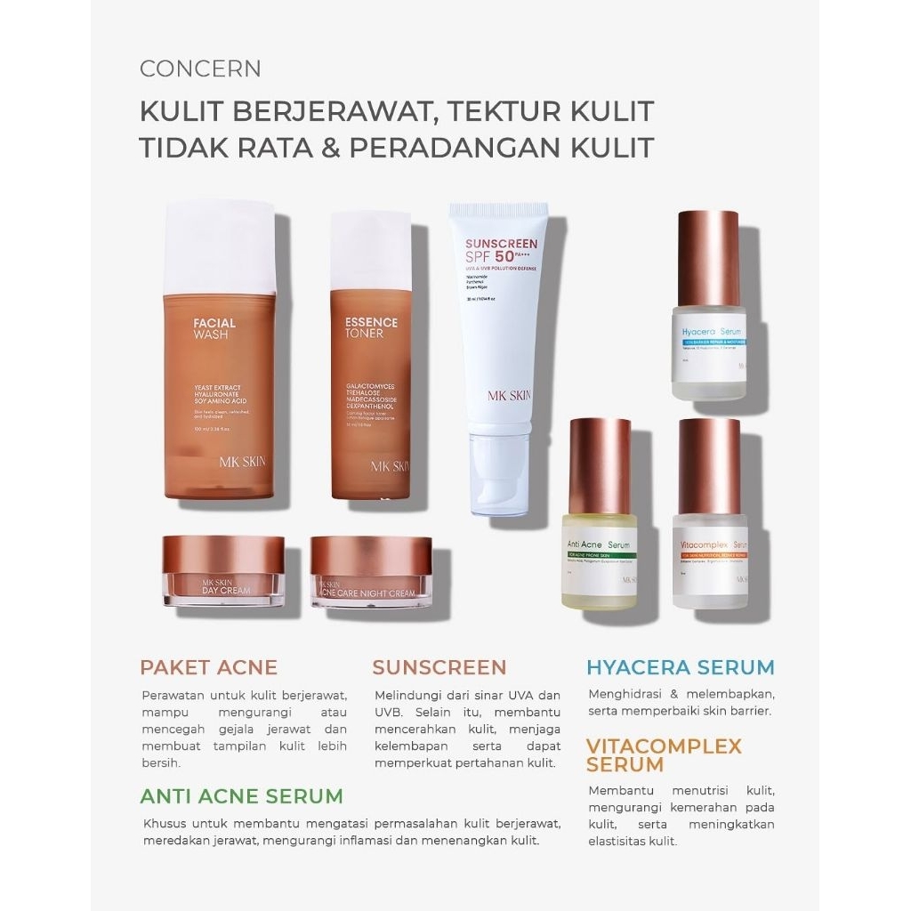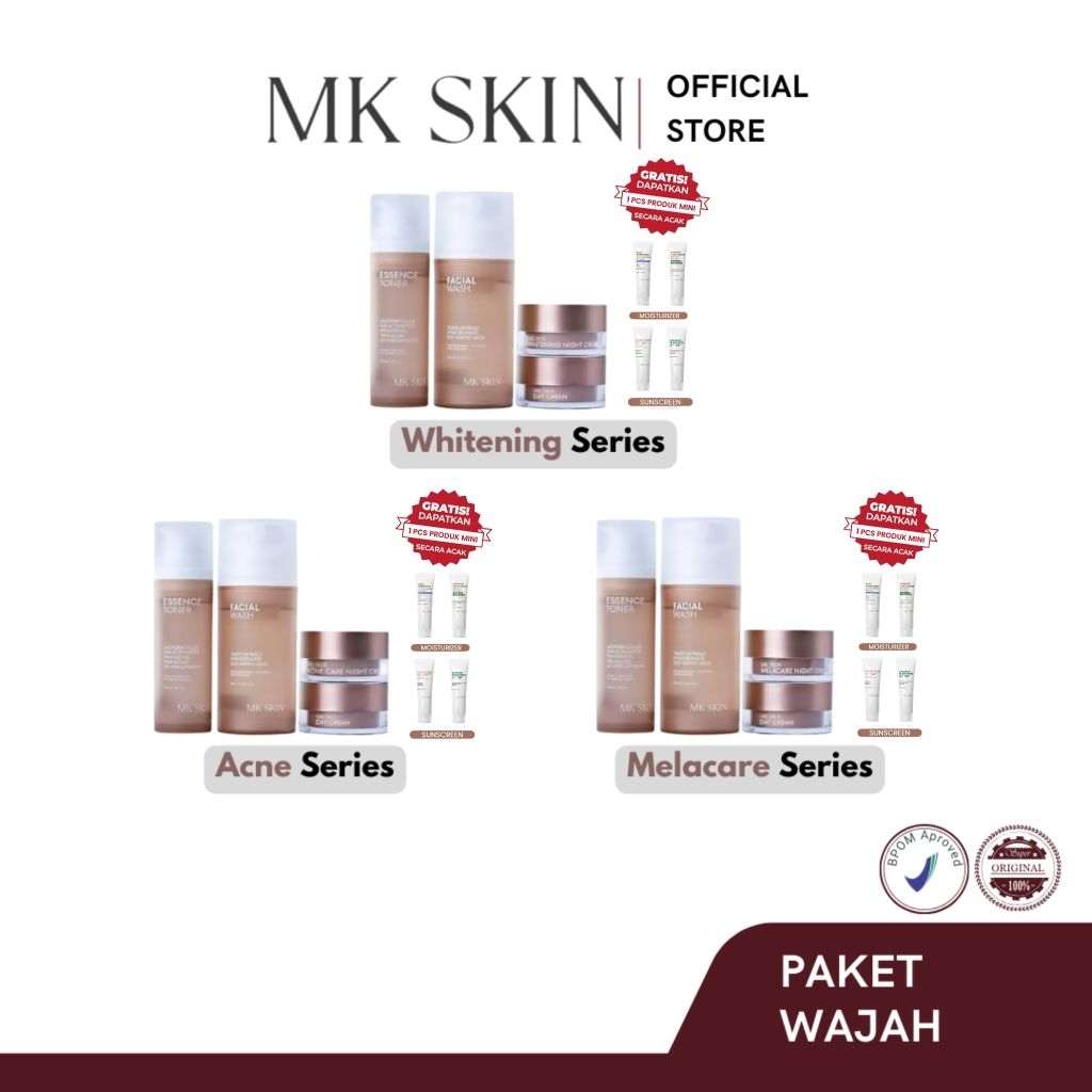 Night Cream Acne MK, Serum Hyacera MK, Serum Acne MK, Serum Retinal MK, Melacare Series MK, Facial Wash MK, Day Cream MK, Calming Moist MK, Night Cream White MK, Whitening Series MK