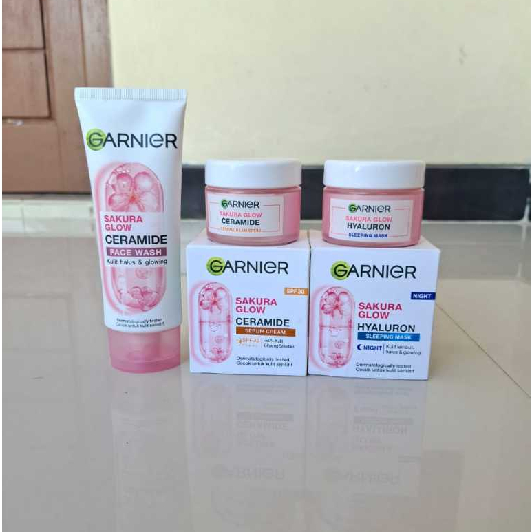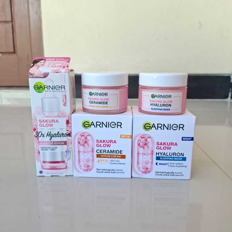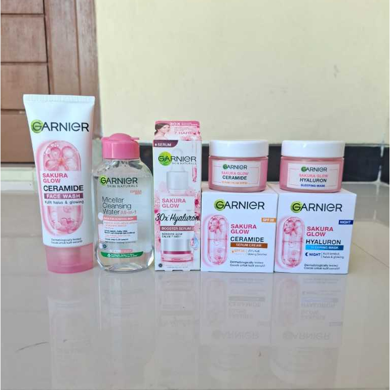 Paket Komplit 5in1 Skincare Garnier Sakura Glow Skin Barrier Simple Set - Untuk Kulit Glowing Anti Ribet & Perbaiki Skin Barrier