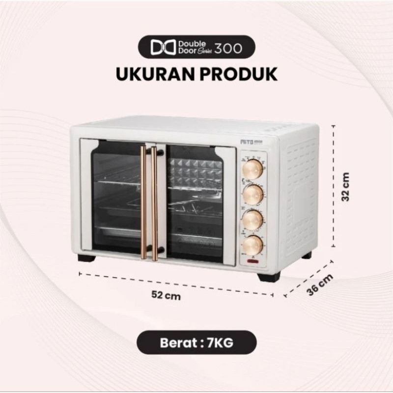 MITO Electric Oven MO300 Double Door 33L | Oven Listrik - Pemanggang Kue dan Makanan Available in 4 colors: Matte Bl