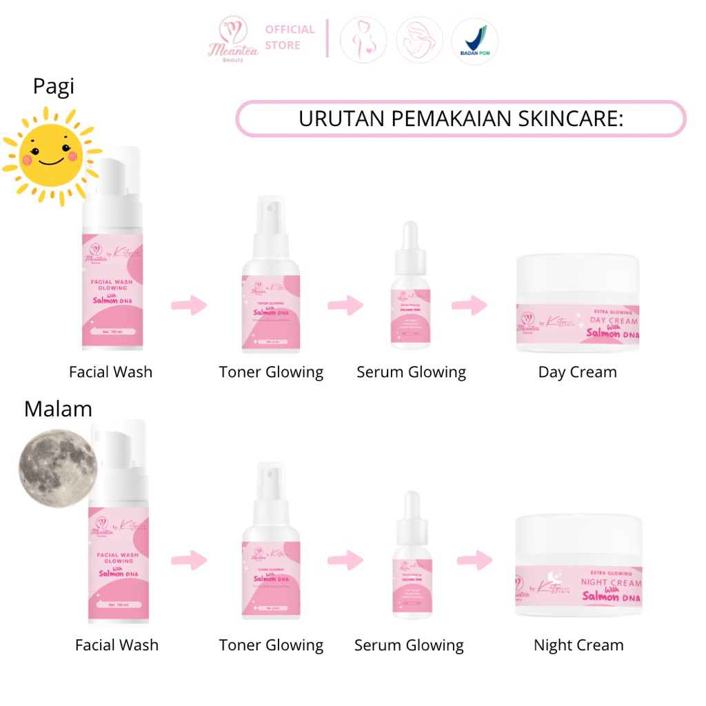 Meantea Beauty - (TERBARU) Skincare 10x Extra Glowing Set DNA Salmon - BPOM