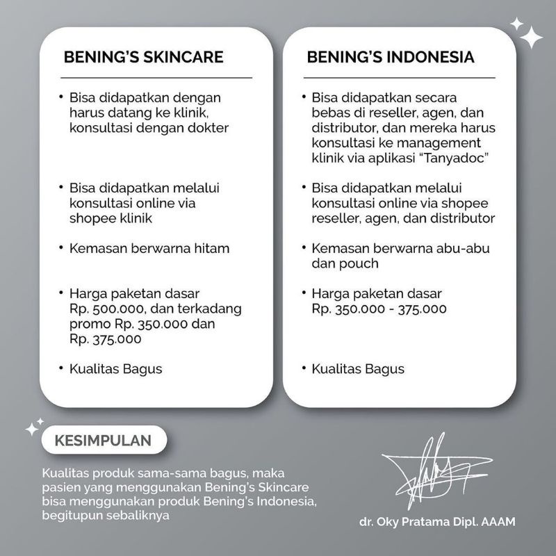 BENINGS SKINCARE BY DR.OKY PRATAMA PAKET BRIGHTENING (BENINGS CLINIC) PENCERAH DAN GLOWING