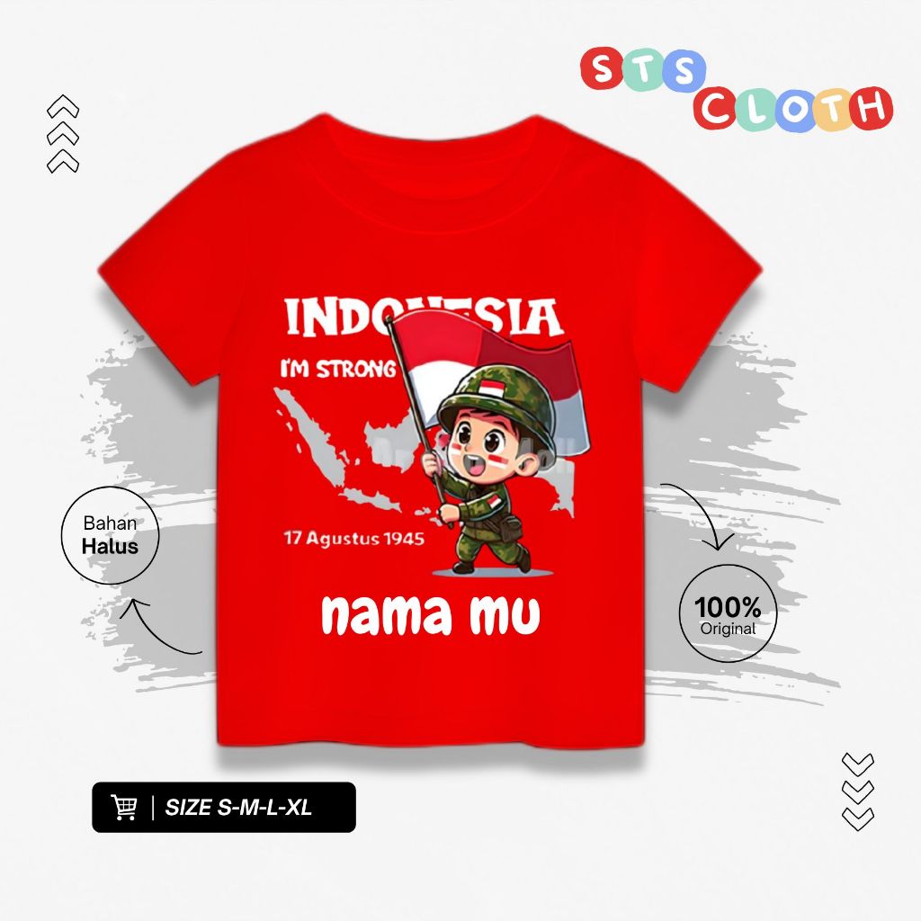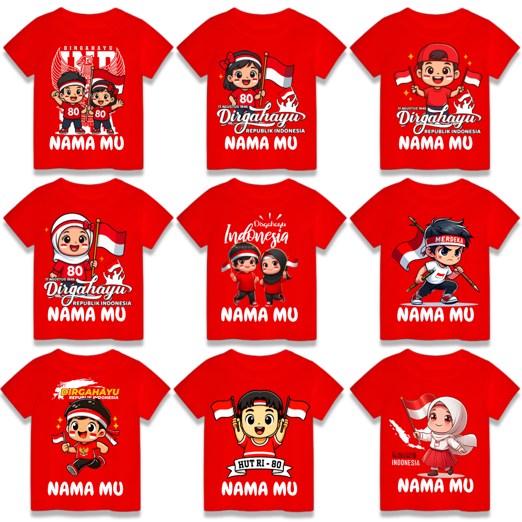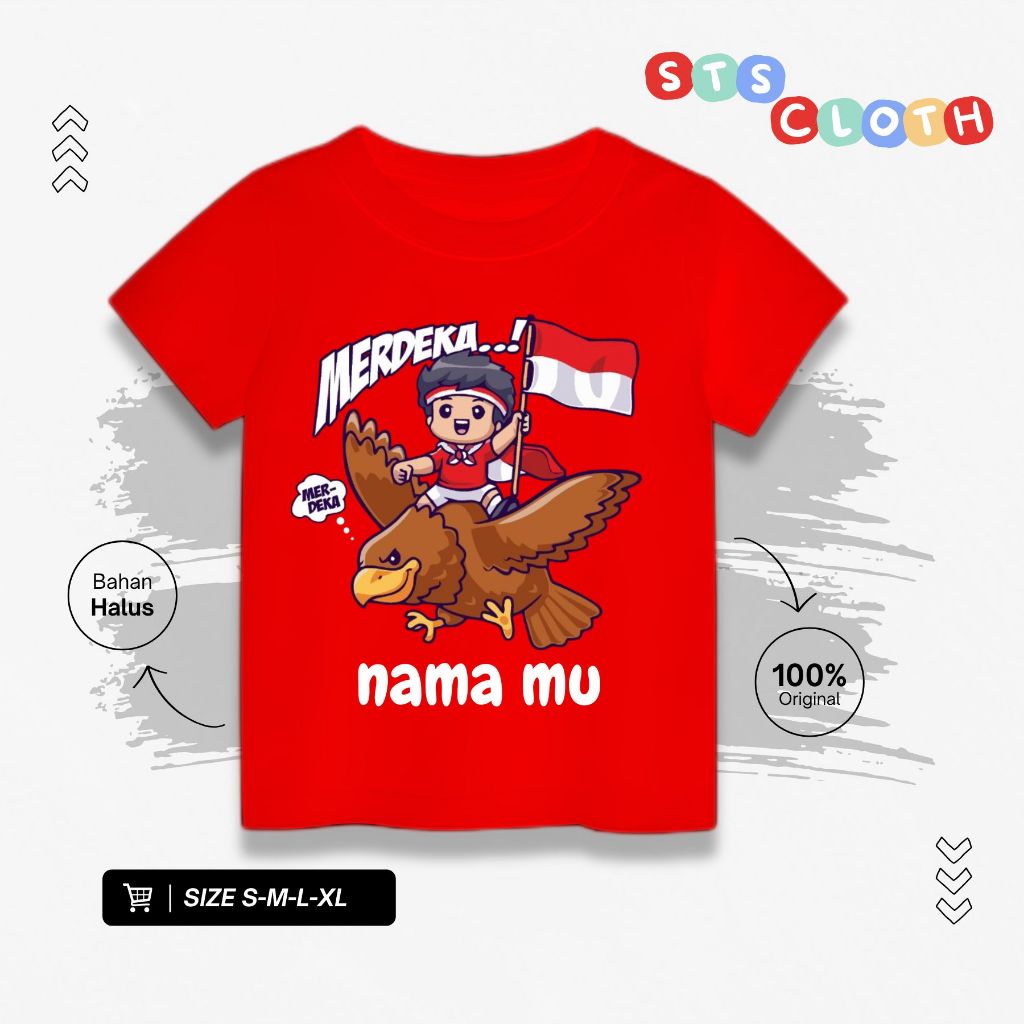 Kaos Anak Kemerdekaan 17 Agustus Laki Laki Perempuan Katun Combed 30S Gratis Nama -