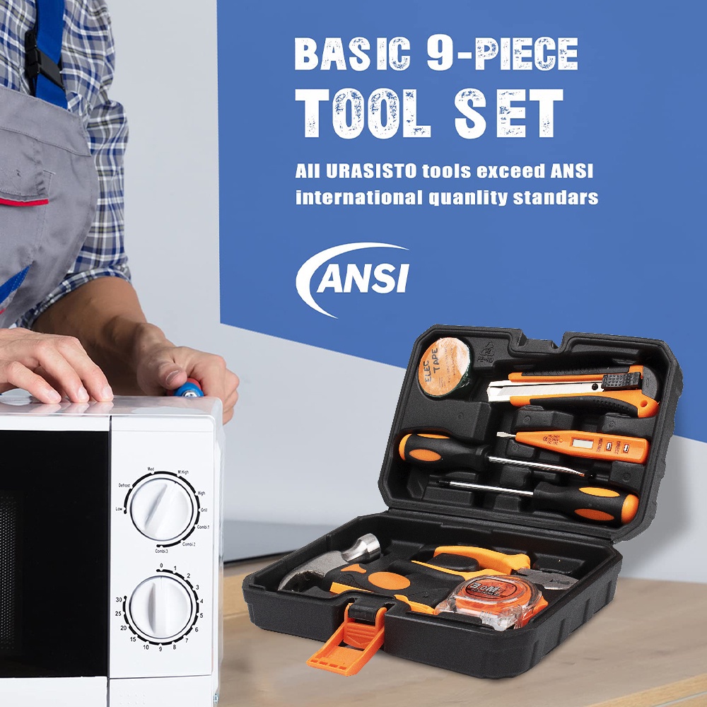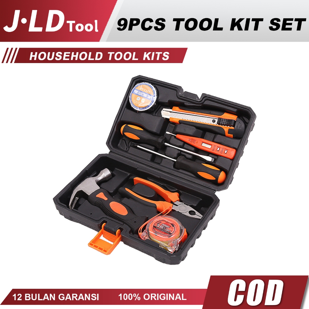 JLD 9PCS Tool Kit Alat Rumah Tangga Toolkit Alat Pertukangan Rumah Perkakas Tukang Lengkap Toolbox Tape Measure/Obeng/El