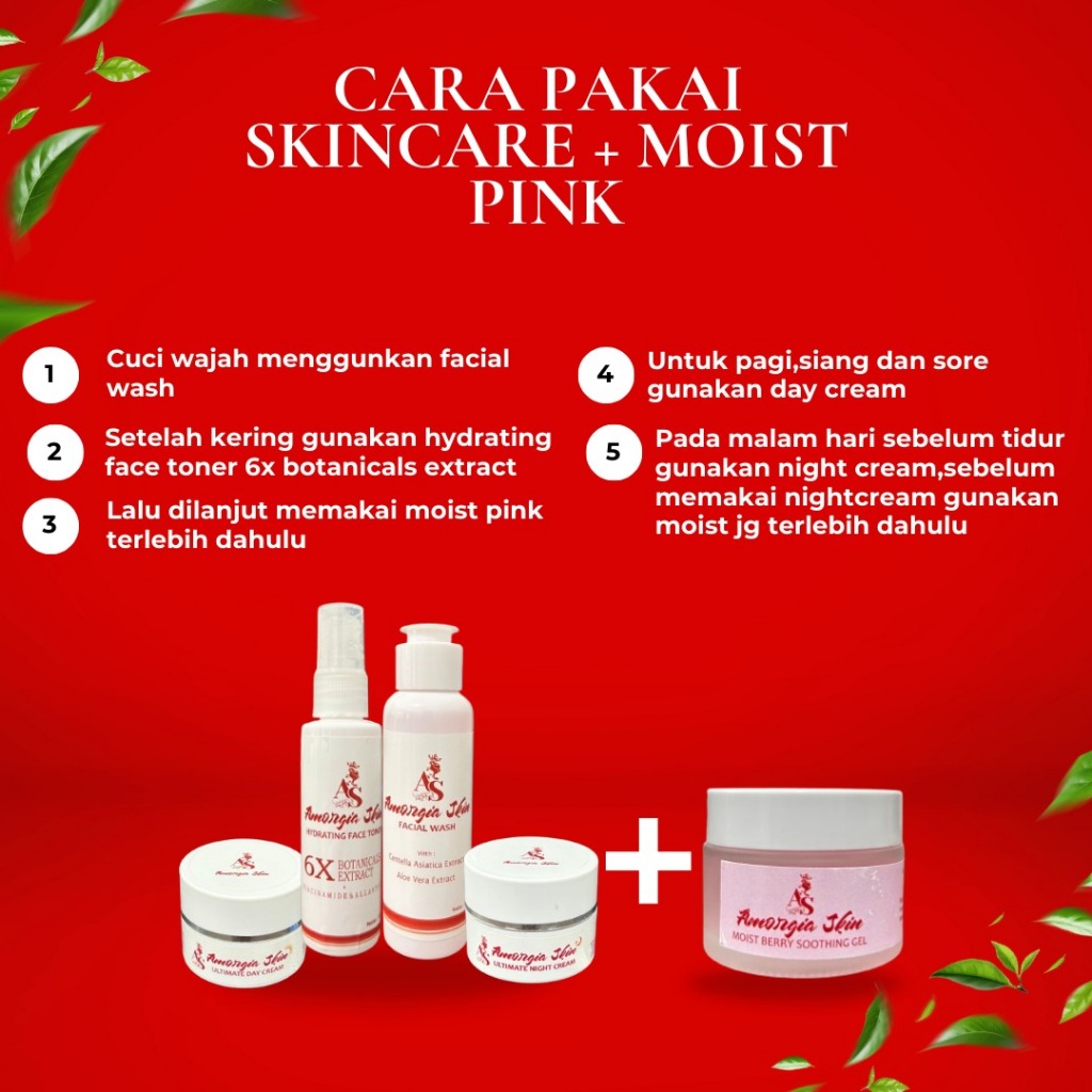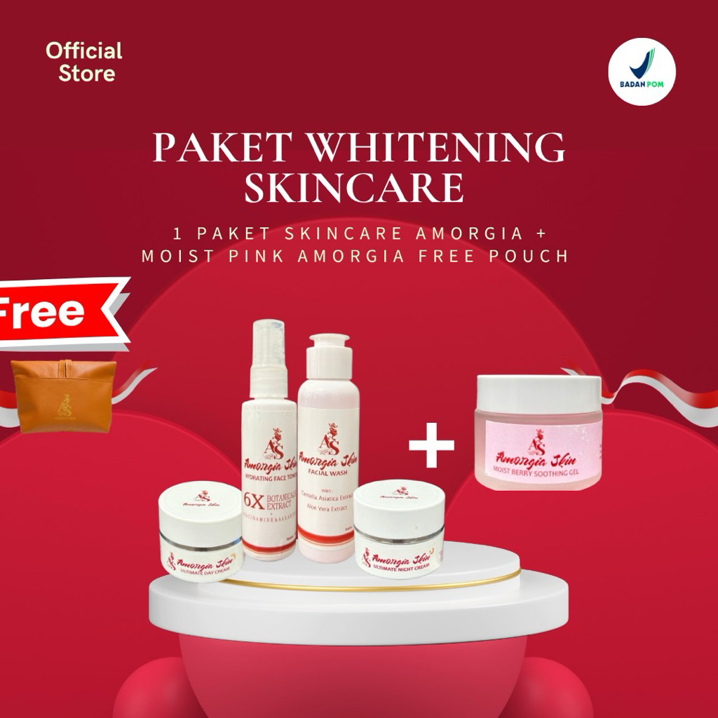 AMORGIA SKIN - Paket Whitening Skincare (Paket Skincare + Moist Pink) Free Pouch