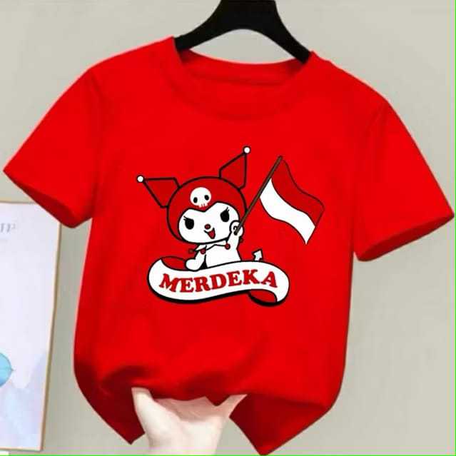 Kaos Anak 17 Agustus Kuromi Merdeka Ideal Usia 2-16 Unisex Cewek Cowok Pakaian Anak Anak Oblong Anak