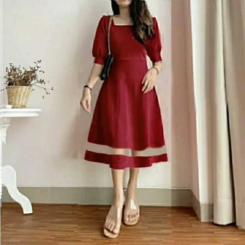 TERLARIS DRES NINDY KOMBINASI TILE SCUBA/DRES KEKINIAN/DRES KANTOR/DRES CANTIK/DRES SIMPLE SIZE S.M.L.XL acara casual formal natalan