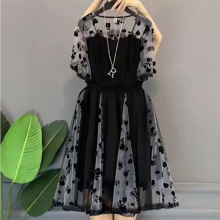 【Ready】Dress Brukat Motif Bunga Korean Style Premium/Dress Pesta Wanita Premium