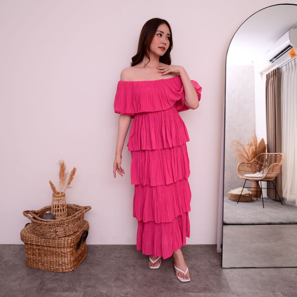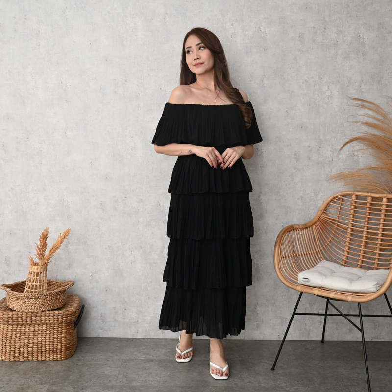 POMPOM SABRINA PANJANG 5 LAYER | Dress Pesta | Dress Casual Maxi