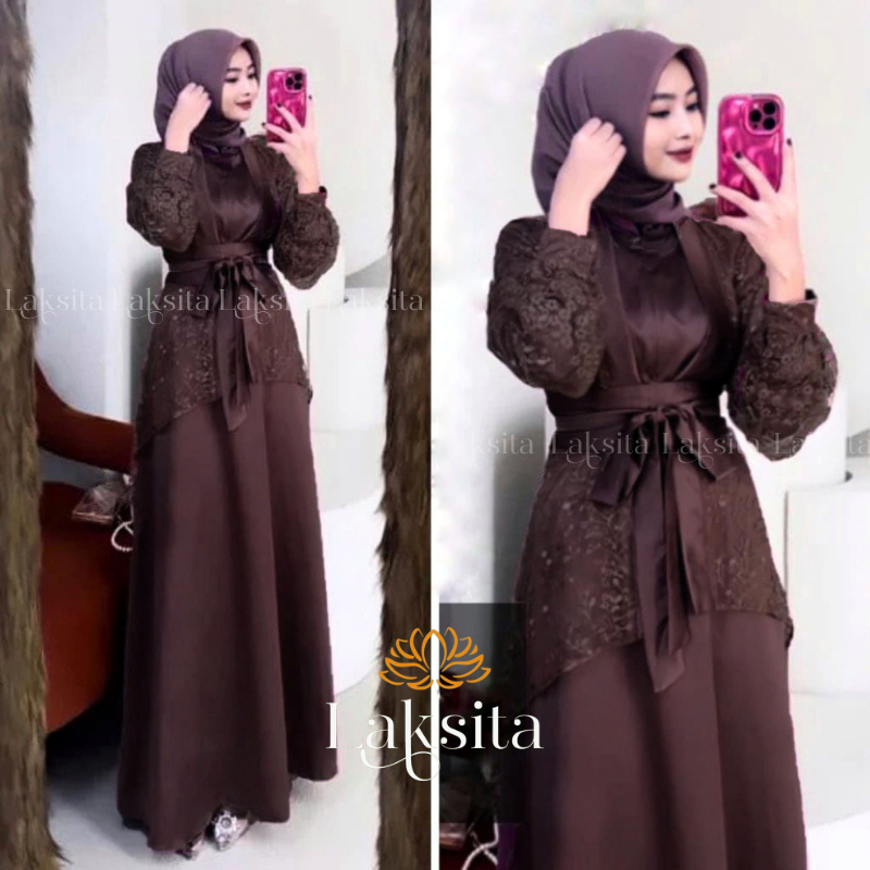 LAKSITA BUSANA - VELOXA DRESS INNER + OUTER BRUKAT TILLE JULLIET PREMIUM FREE BELT GAUN BUSUI FRIENDLY | GAMIS KIMONO JEPANG ONESET DRESS KONDANGAN PLUS OUTER LUXURY