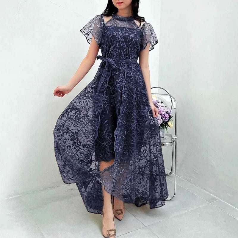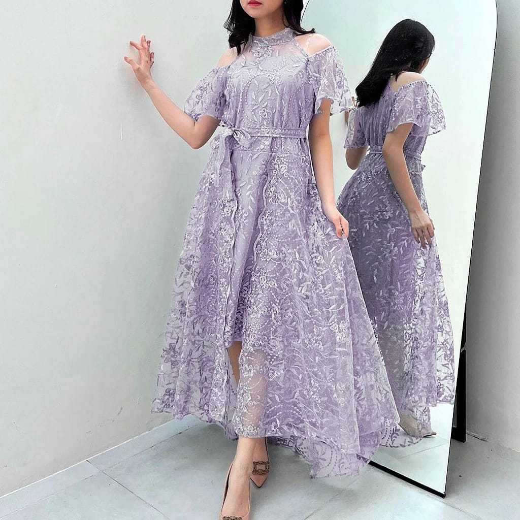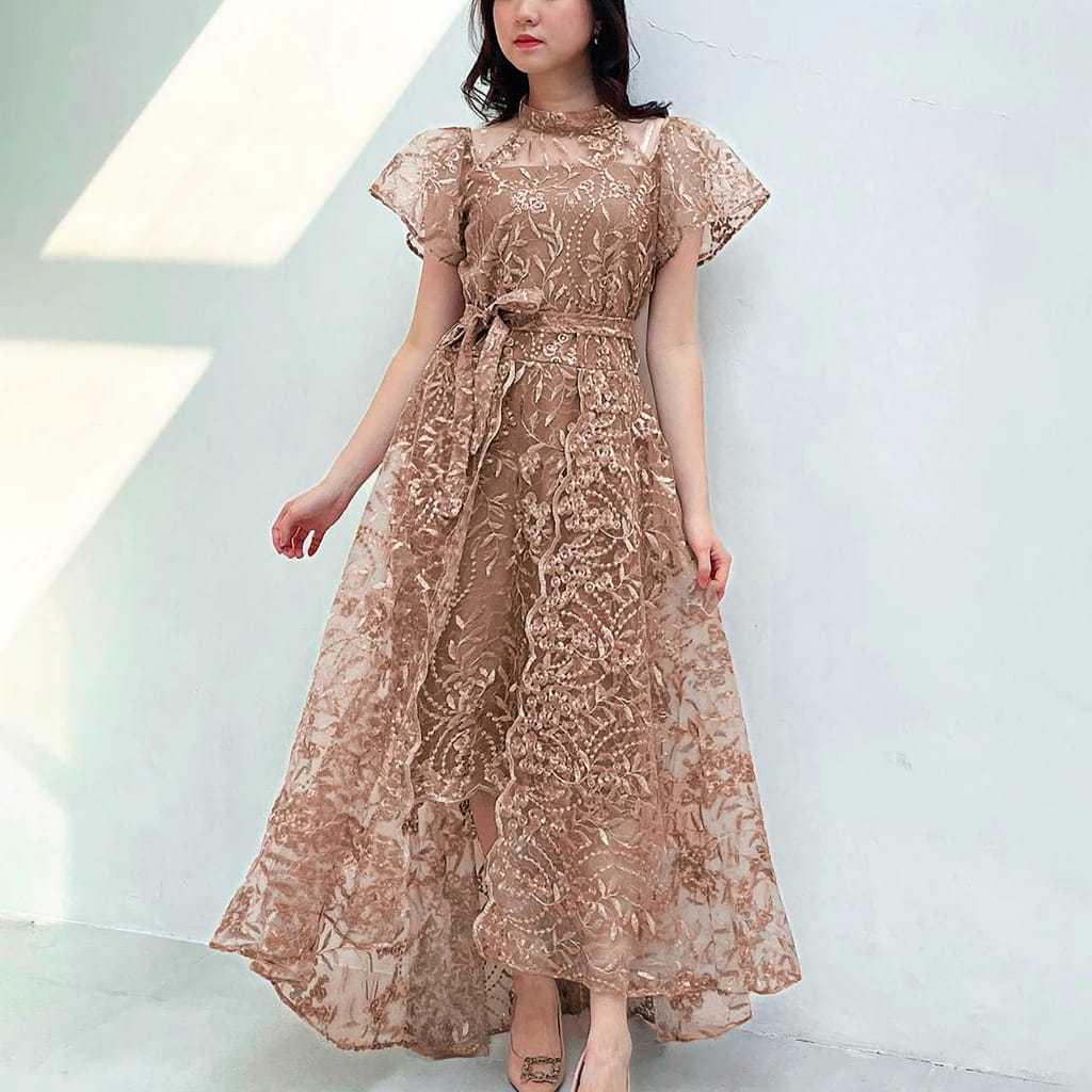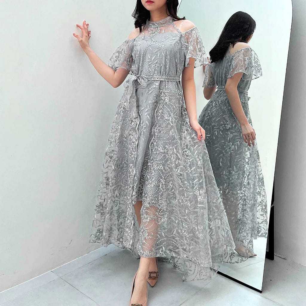 Dress Wanita Pesta Terbaru Full Brokat Mutiara/Dress Charity Size M-L-XL/Gaun Wanita Koreaan Elegant