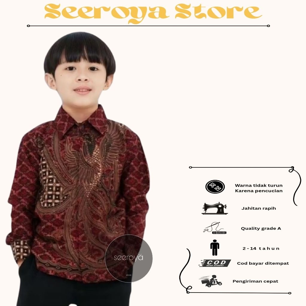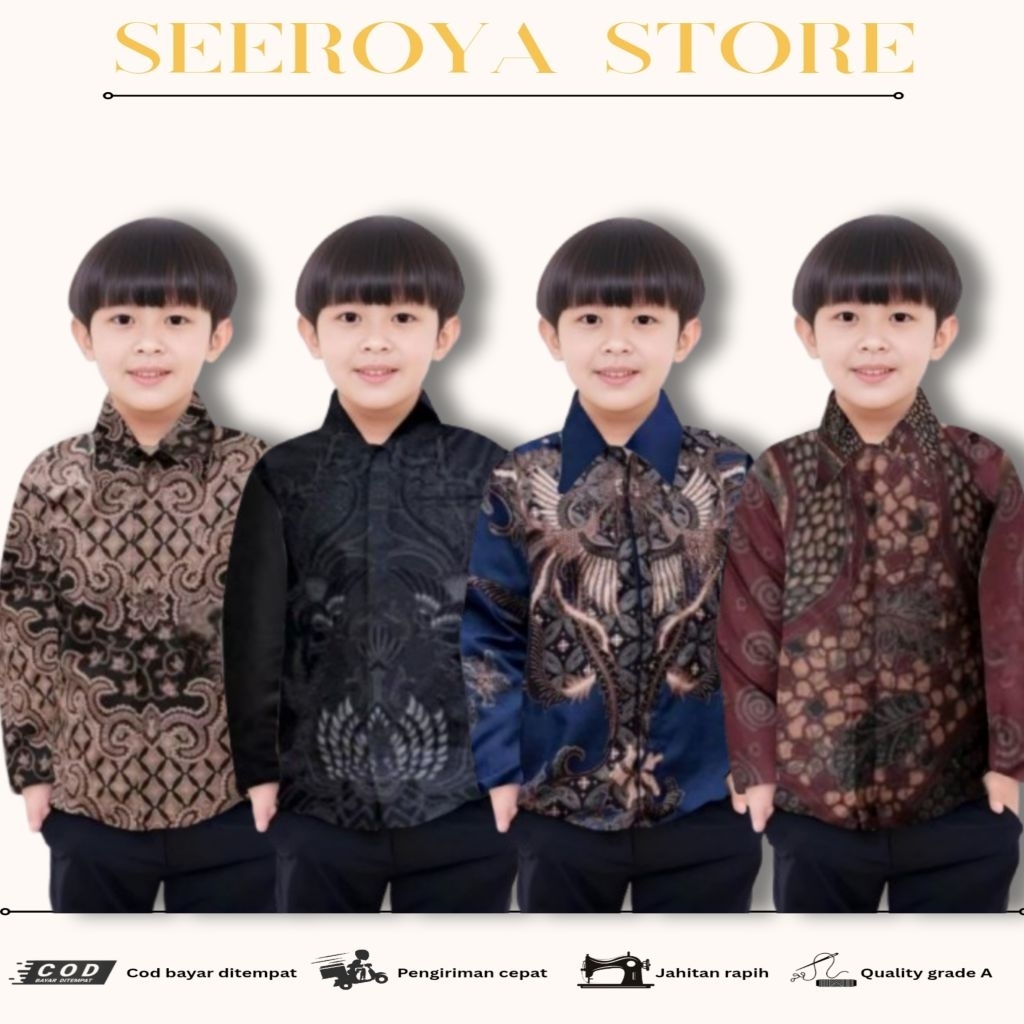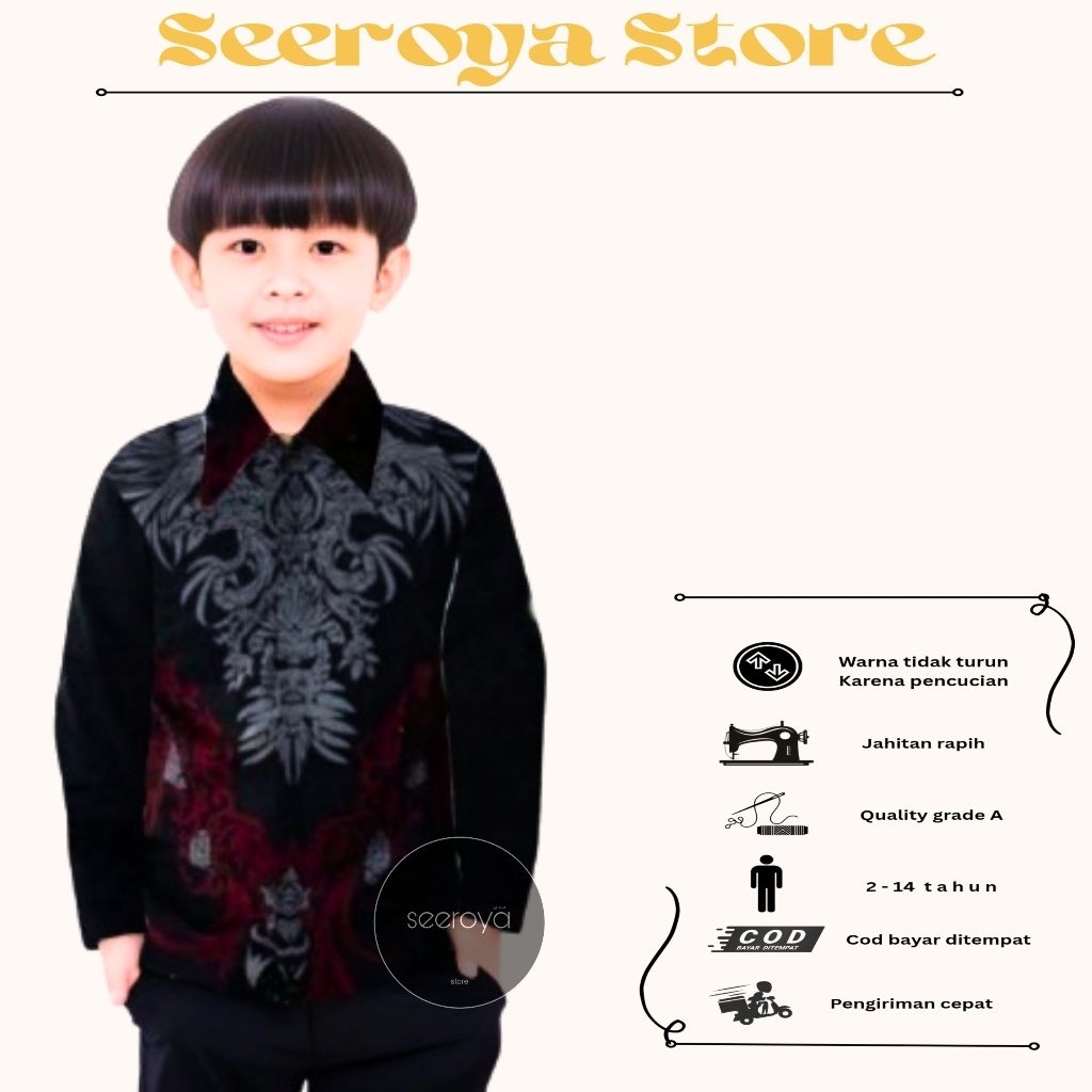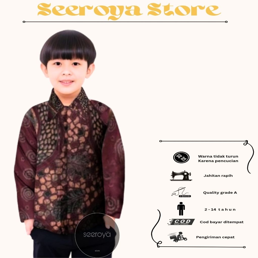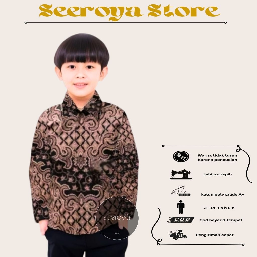 Baju Batik Anak Laki Laki Lengan Panjang usia 2-14 tahun -Kemeja Batik Anak Cowok Lengan Panjang Size M L XL XXL-Kemeja Anak Laki Laki Lengan Panjang Motif Terbaru