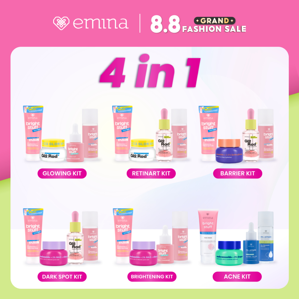 Emina 4pcs Bundle 4in1 Paket skincare Moisturizer Serum Face Wash - GLOWING KIT ACNE KIT Dark Spot Bright Barrier Set