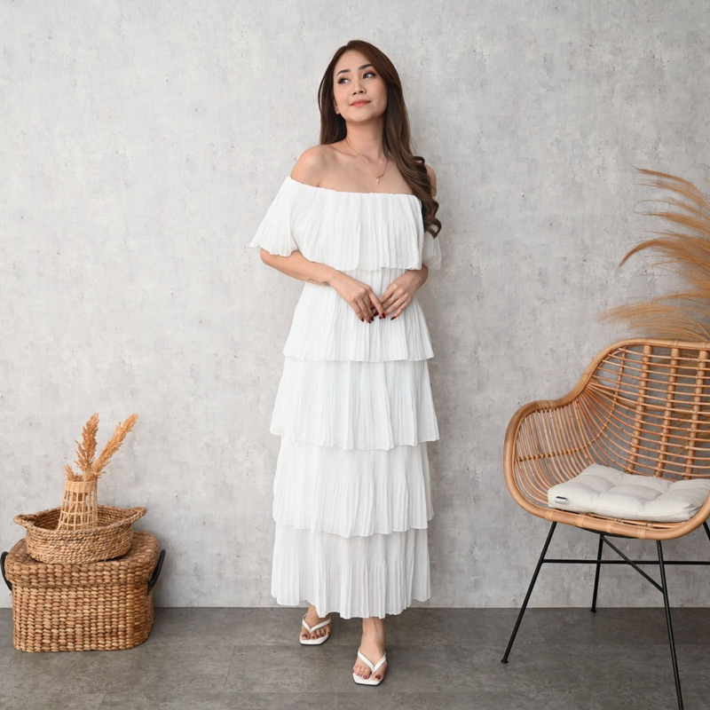 POMPOM SABRINA PANJANG 5 LAYER | Dress Pesta | Dress Casual Maxi