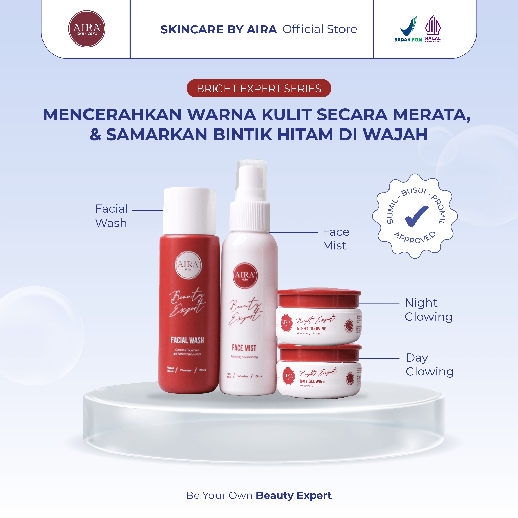 AIRA - Bright Expert Series - mencerahkan wajah, buat muka glowing, brightening, skincare glowing bpom sepaket, anti dark spot, menyamarkan flek kulit kusam, niacinamide